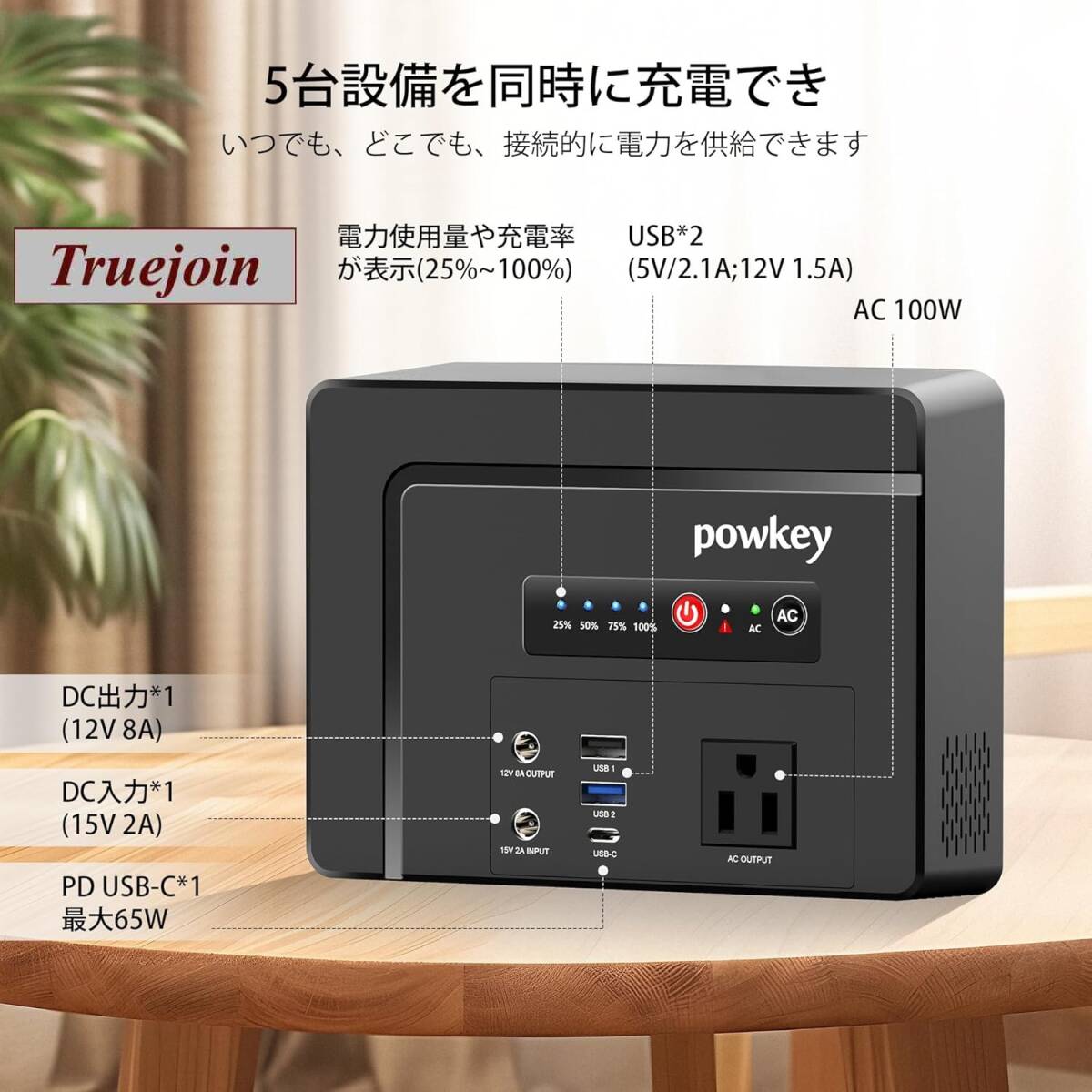 さまざまな家電製品に対応しており、最大5台の機器を同時に給電できます。