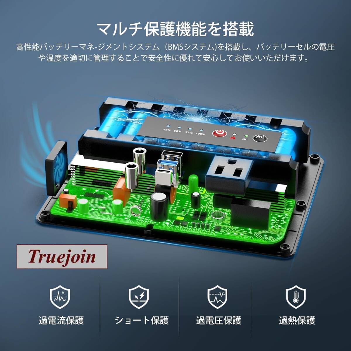 4つのインジケーター(25%、50%、75%、100%)が内蔵、電力使用量や充電率を表示し、より適切に管理・利用できます。安全性を保証し、アップグレードされたBMS(バッテリー管理システム)バッテリー管理を採用しました。18*4.5*14.5CMのダッフルバッグや小型バンなどへ、簡単に収納、持ち運びも容易です。
