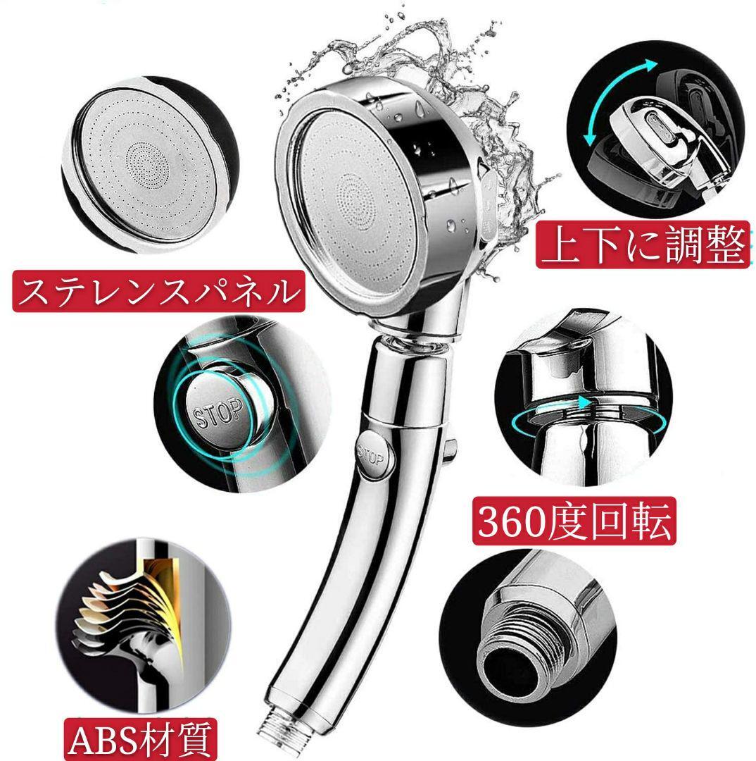 シャワーヘッド 3段階モード ストップボタン 節水 増圧 低水圧対応 360°角度回転 シャワー 国際汎用基準G1/2