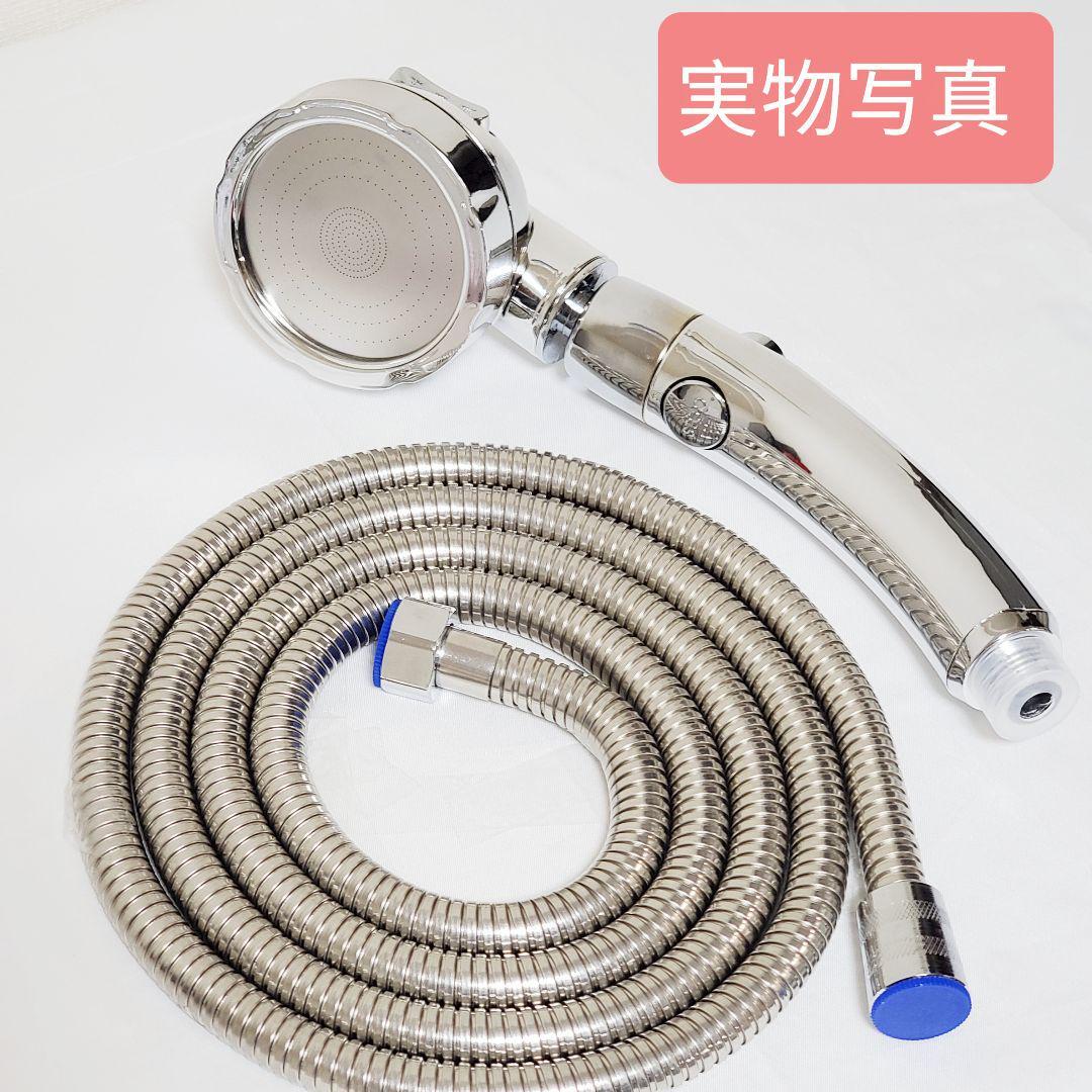 ☆シャワーヘッド+1.5mホースセット 3段モード ストップボタン 節水増圧
