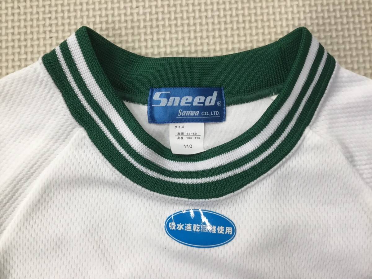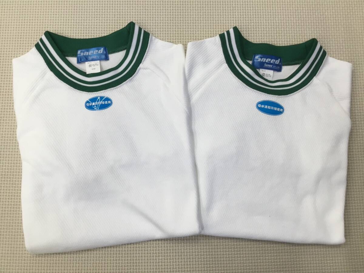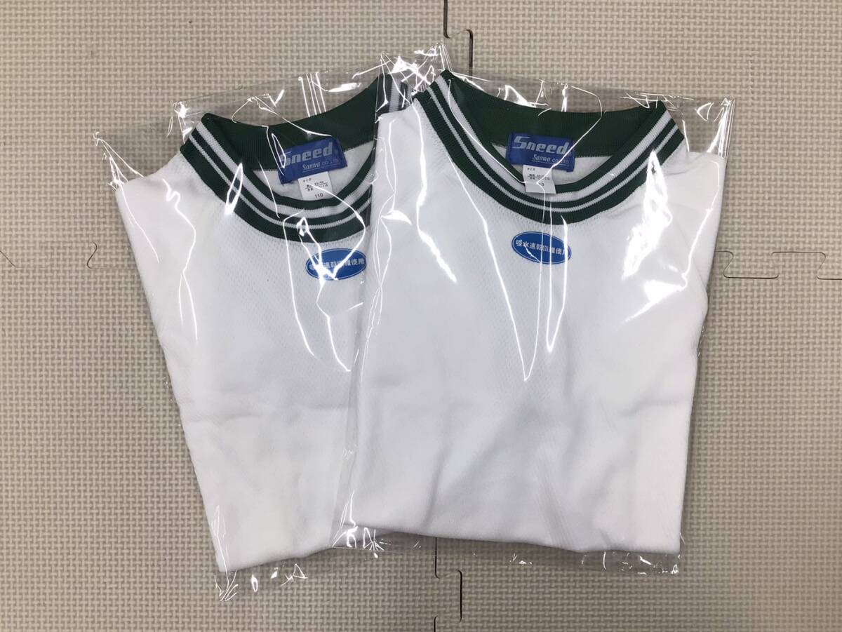 S443 新品【Sneed Sanwa】ジュニア スポーツウェア 半袖 サイズ 110 2枚/白x緑/丸衿/男女兼用/体操着/幼児/児童/幼稚園/小学生 /ぬいぐるみ