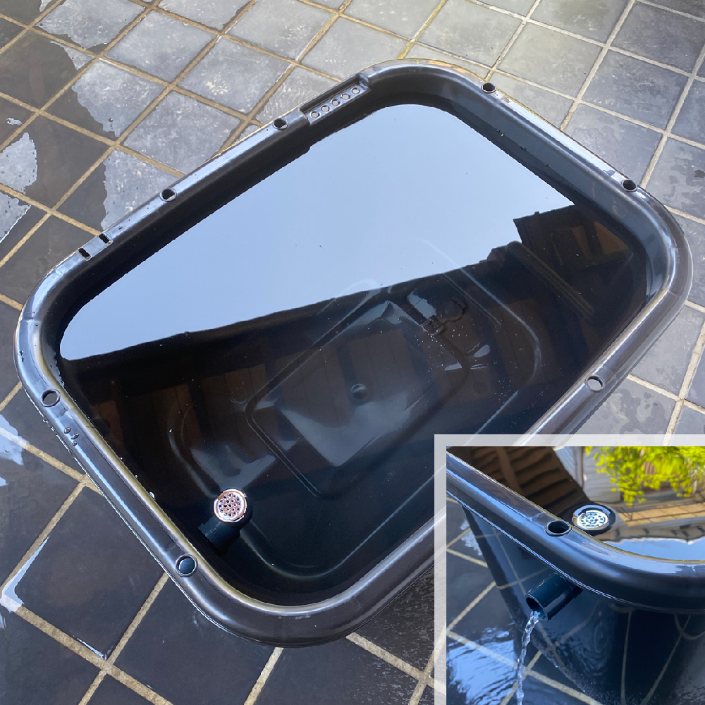 メダカや金魚の屋外飼育に最適な35.3リットル容器オーバーフロー加工済み新品送料別です。