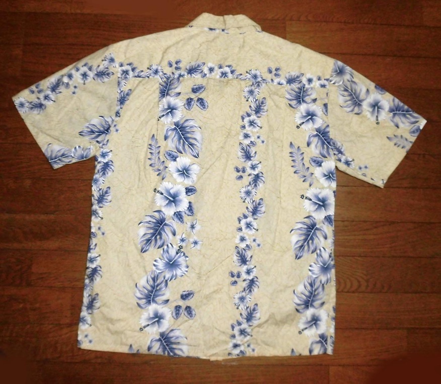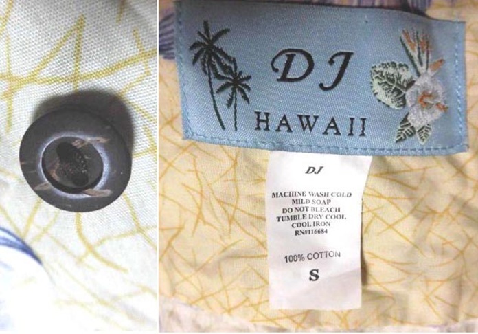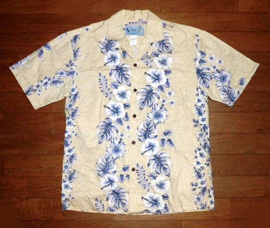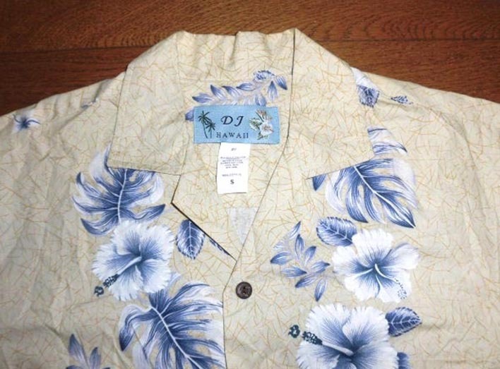 DJ HAWAII ディージェー ハワイ アロハシャツ コットン 半袖 ハイビスカス柄 ハワイアンシャツ ココナッツボタン BEG S 使用僅 美品