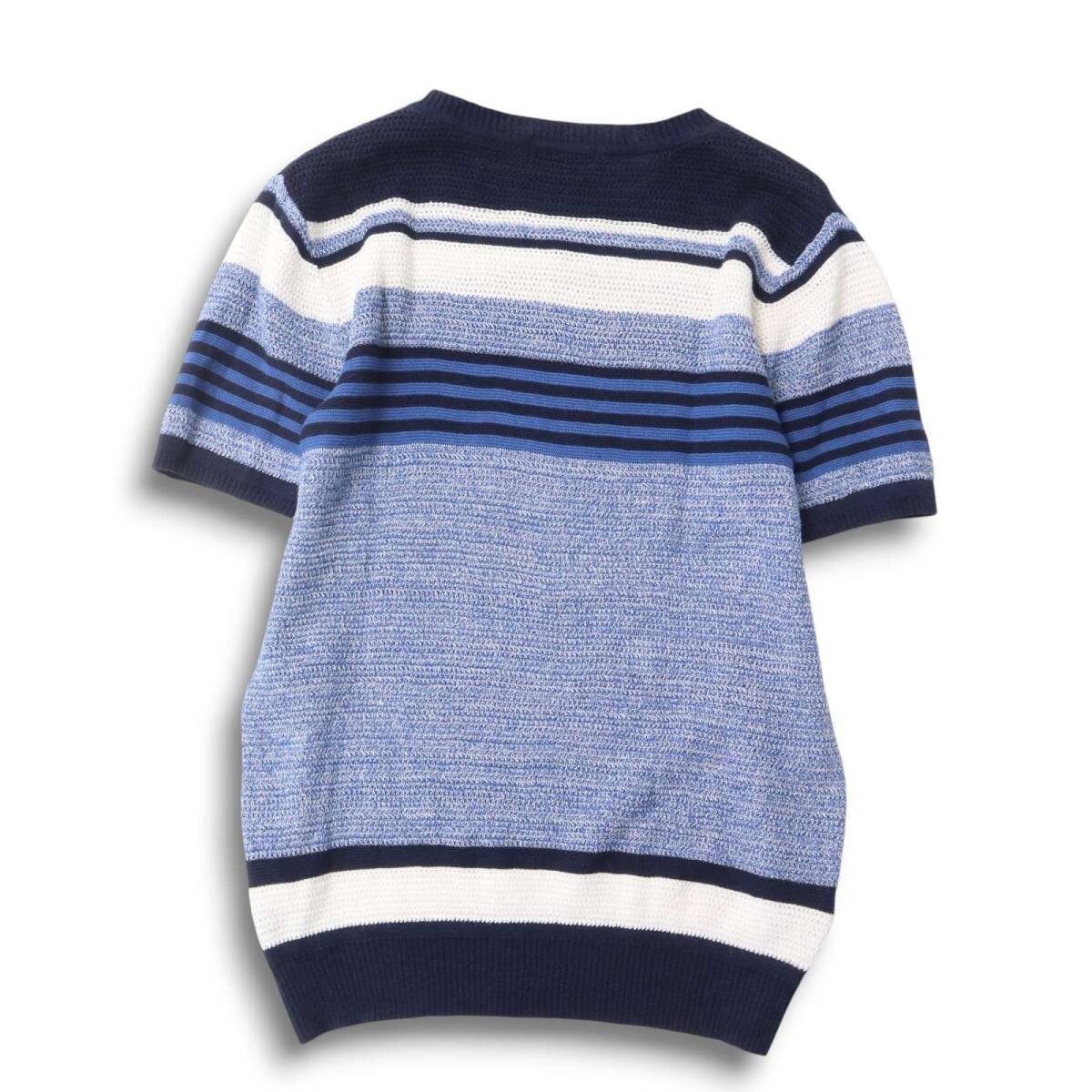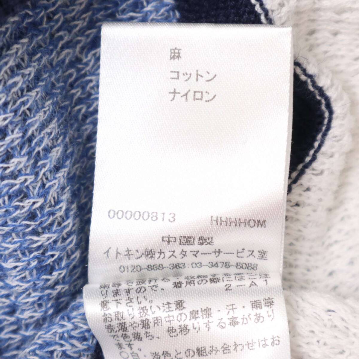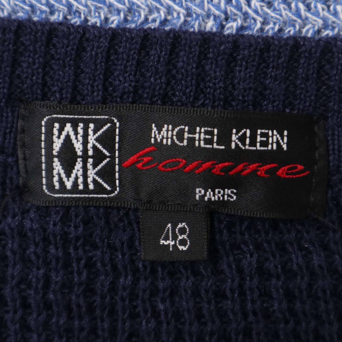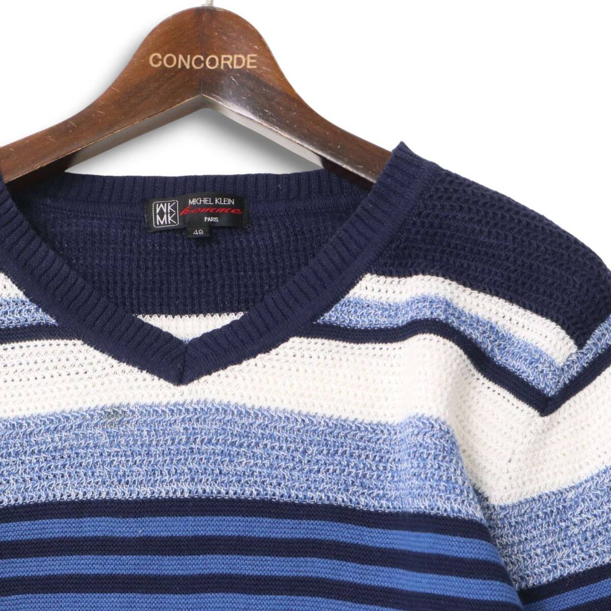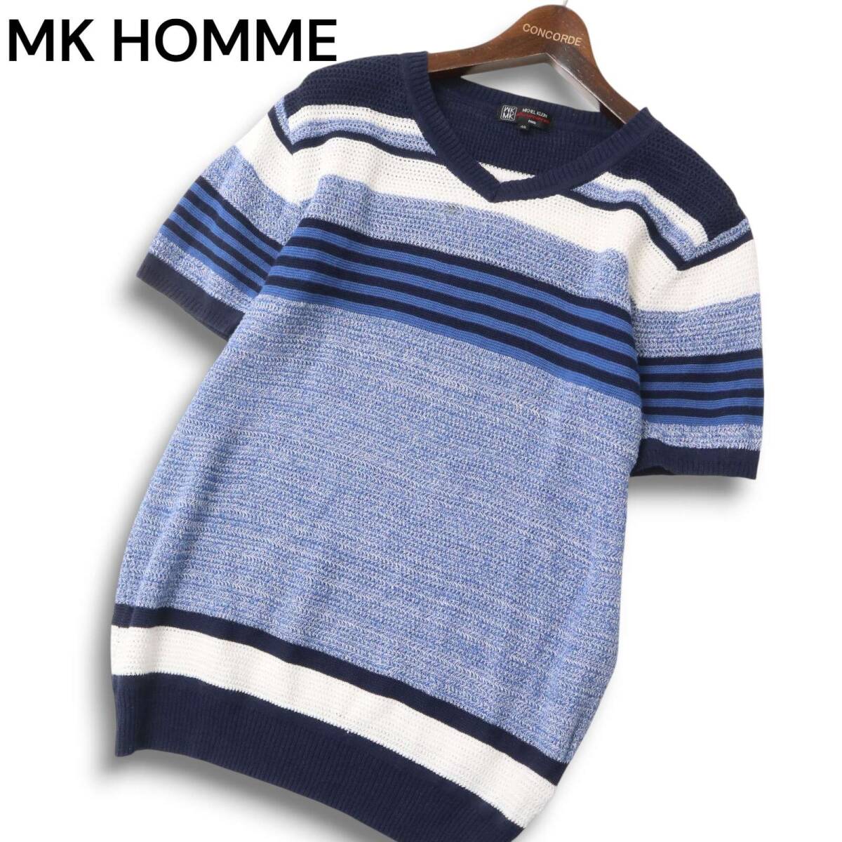 MK HOMME ミッシェルクラン オム 春夏 麻 リネン★ ボーダー 半袖 サマー Vネック セーター ニット Tシャツ Sz.48 メンズ