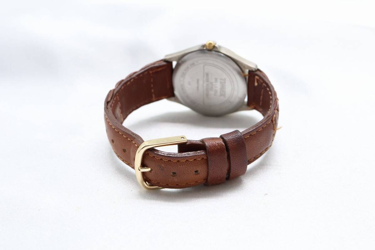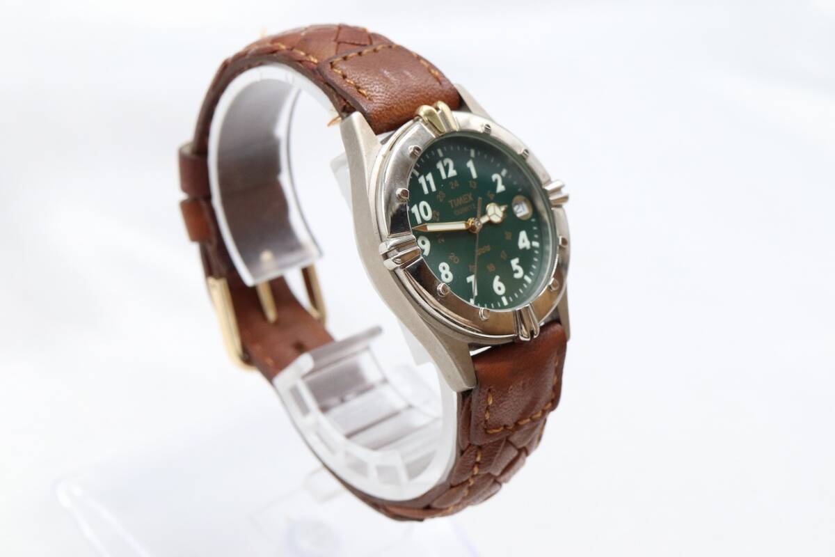【W255-6】動作品 電池交換済 TIMEX タイメックス デイト 腕時計 革ベルト レディース【送料全国一律185円】
