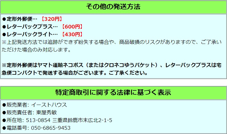 | ■□□ お取引きについて □□■ ●出張などで発送やメールのやり取りが出来ない場合など、重要なお知らせは「自己紹介欄」に更新しますので、落札前に必ずご確認ください。 ●基本的に同梱発送は可能ですが、商品の組み合わせによってはご希望に添えない場合がございます。ご了承ください。 |