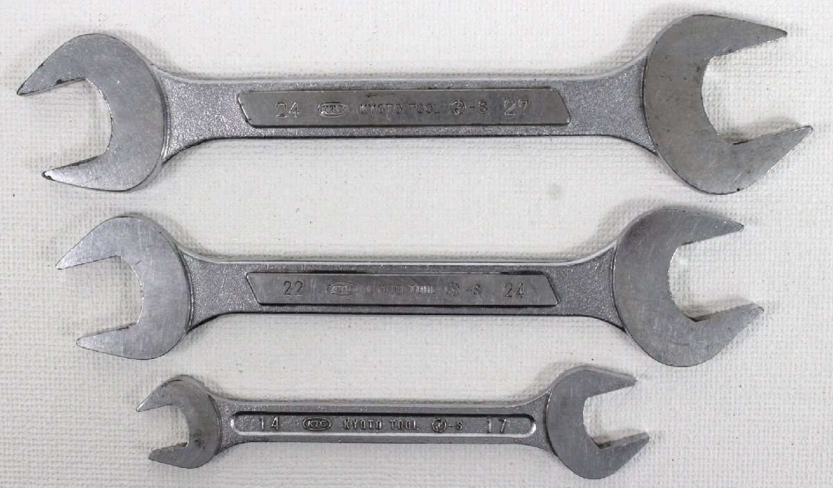 | □ジャンク品□ KTC 京都機械工具 コンビネーションレンチ 11本まとめ(サイズ6~27mm色々) (2761550M) ■こちらはジャンク品となります ・KTC 京都機械工具 ・コンビネーションレンチ 11本まとめ ・材質:Ni-Cr-V ニッケル-クローム-バナジウム ・サイズ:6-7,6-7,8-9,8-10,14-17,22-24,24-27 ・材質:ALLOY STEEL ・サイズ:10-10,10-12,17-19,22-24 ■状態 ・スレキズ,ヨゴレがございます ■内容 ・写真に写っているものが全てです ※御理解の上、ご入札をお願い致します |