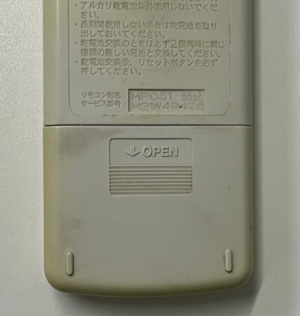 三菱電機 エアコン用リモコン MP051 / M21W49426 中古動作品