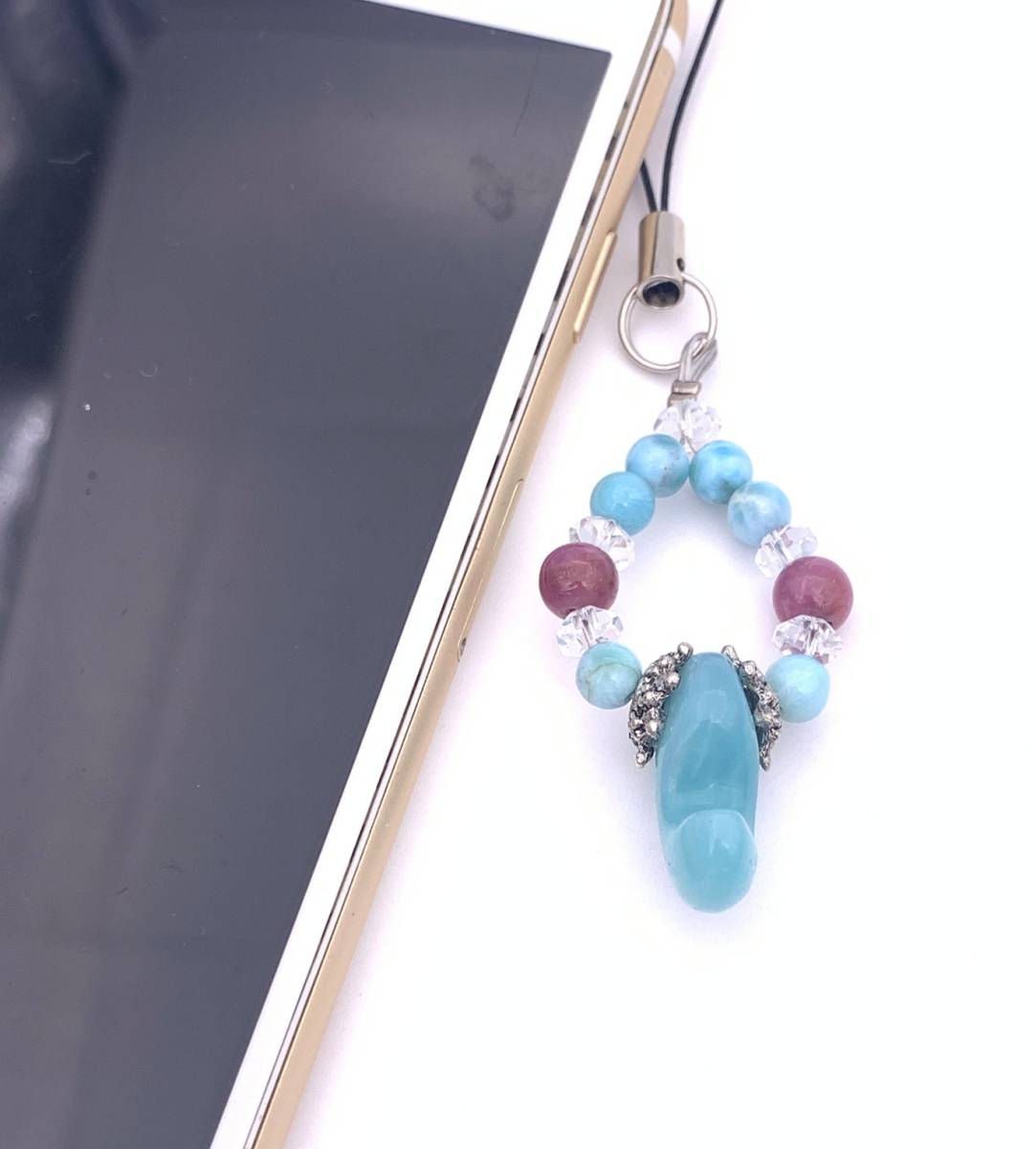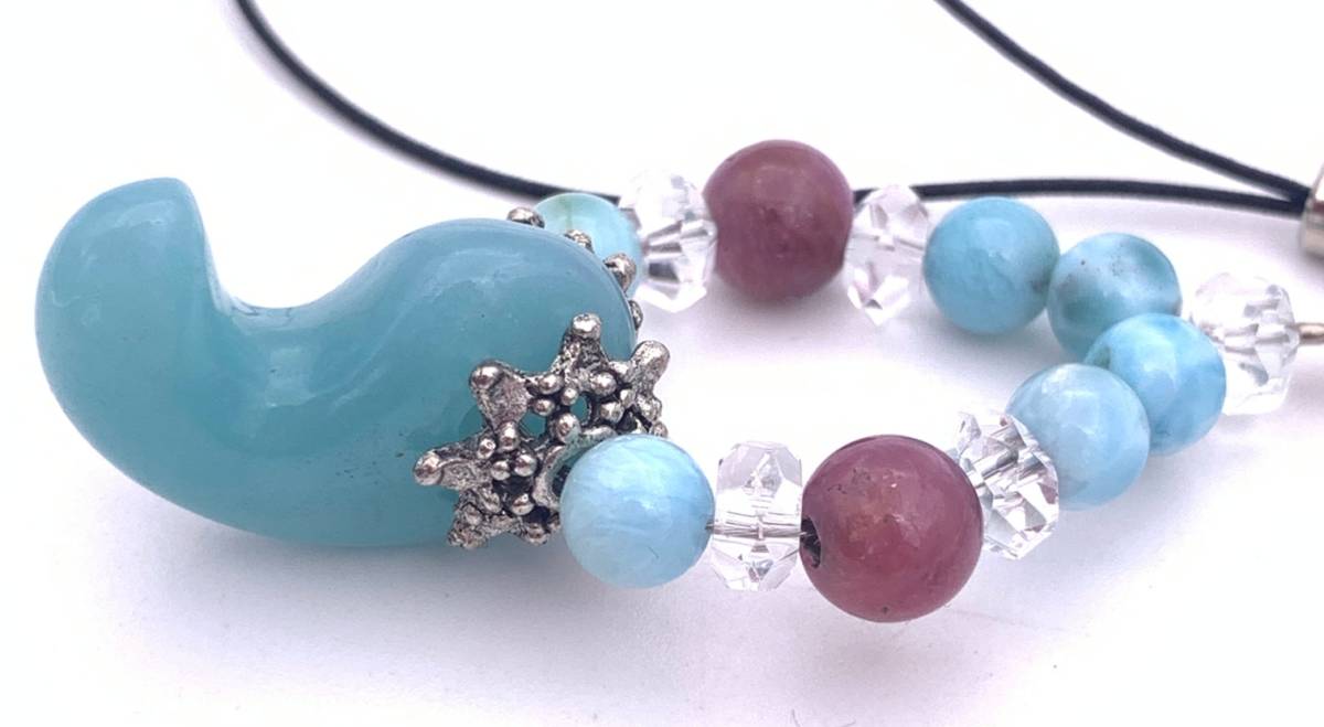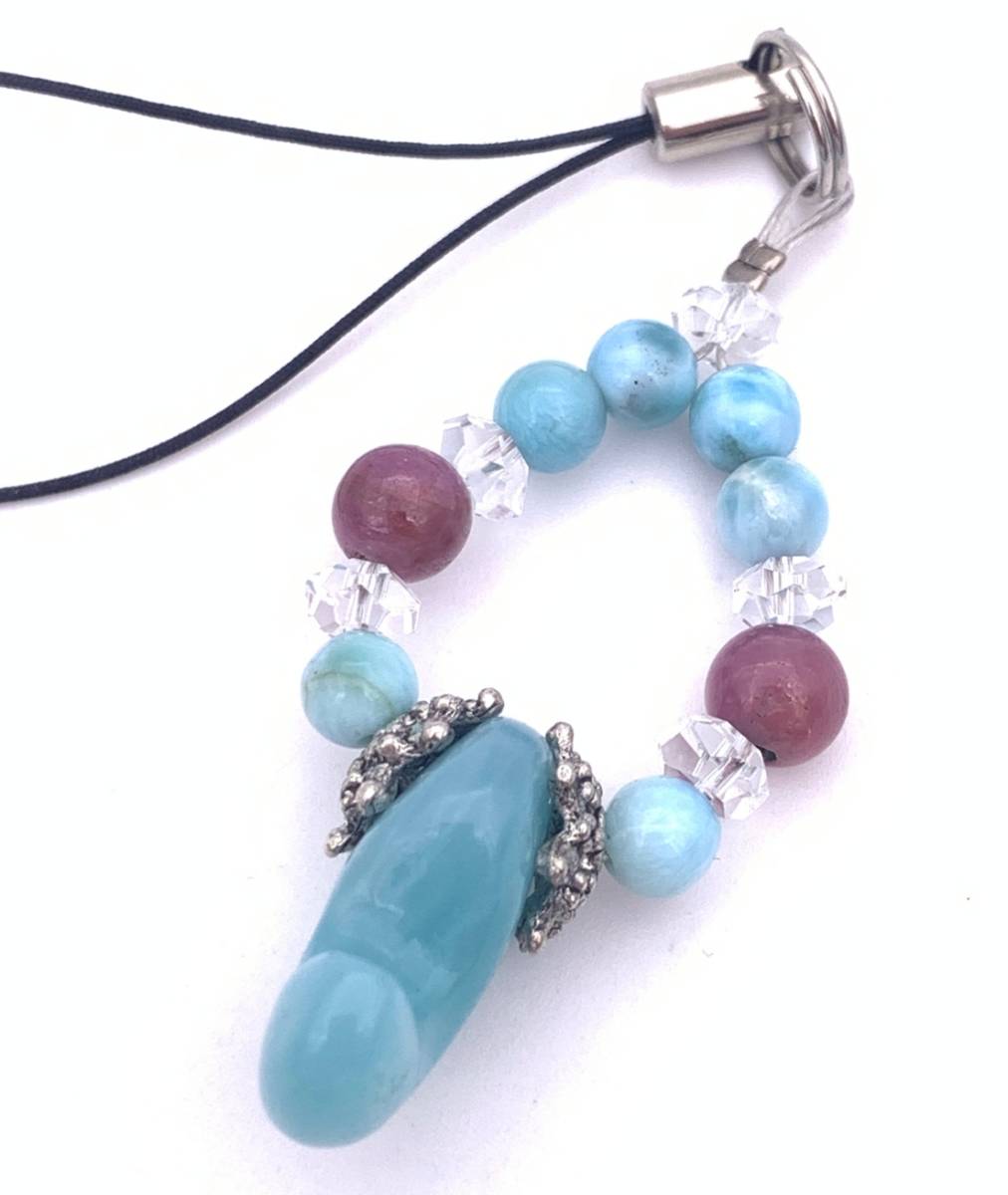 天然石アマゾナイト勾玉&ラリマー&ルビーのストラップ