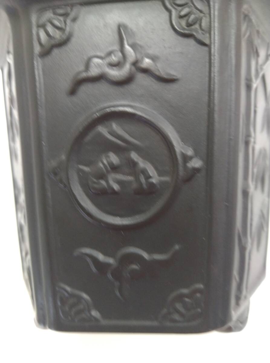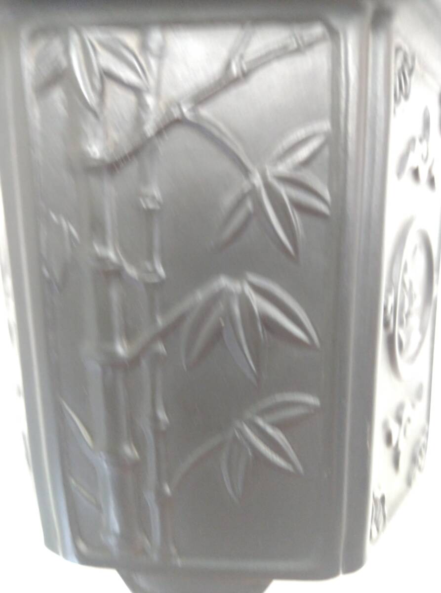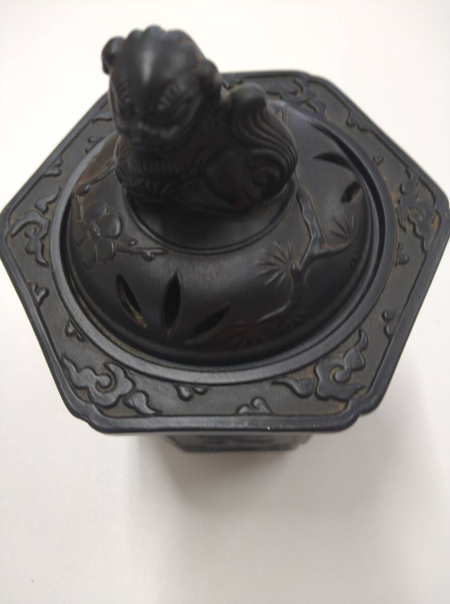 脚付きの複数の模様が足合われた六角形の香炉です。