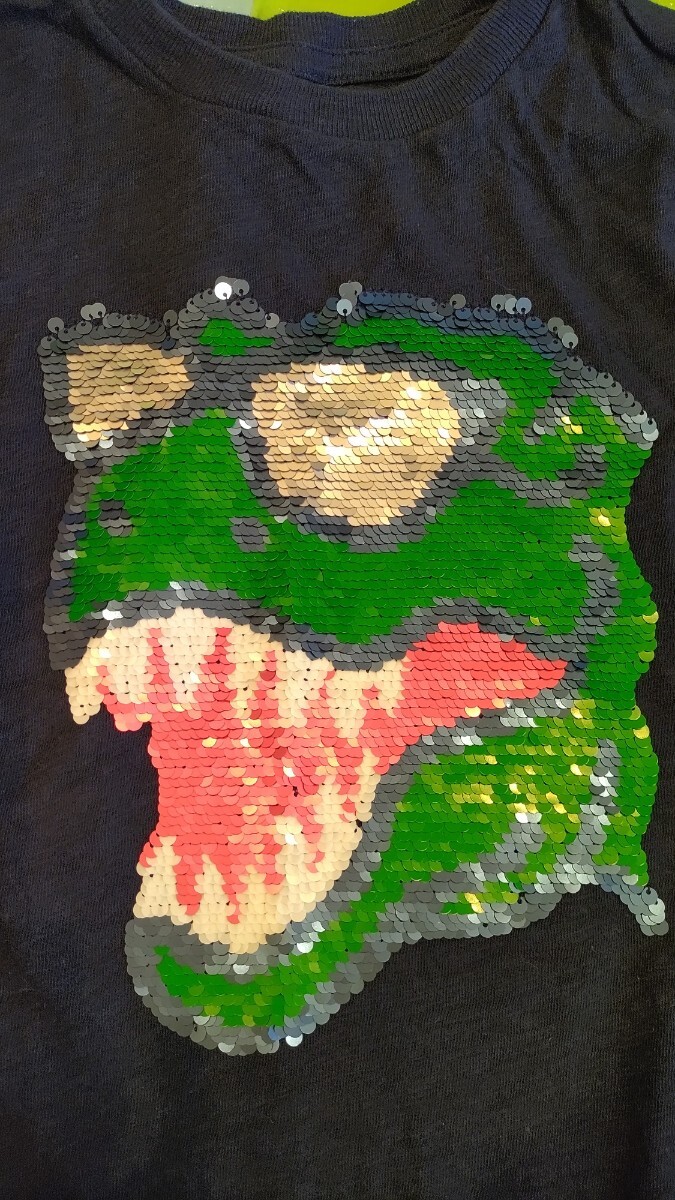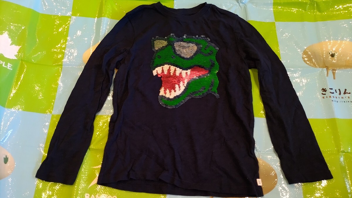 GAP KIDS   中央スパンコール恐竜柄長袖Tシャツ