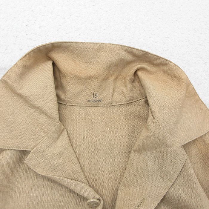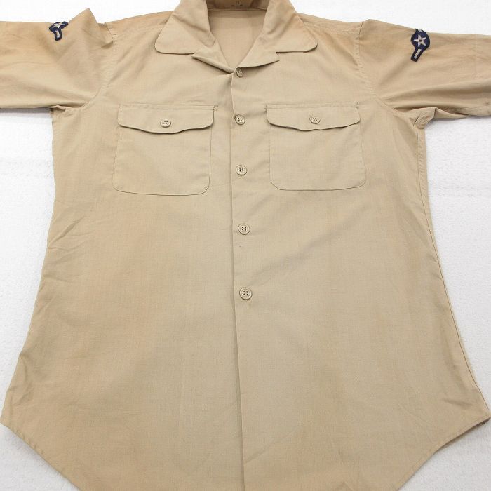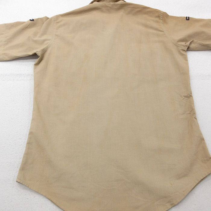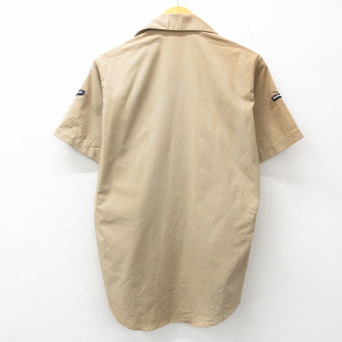 【商品名】 M★古着 半袖 ミリタリー シャツ メンズ 80年代 80s 開襟 オープンカラー ベージュ