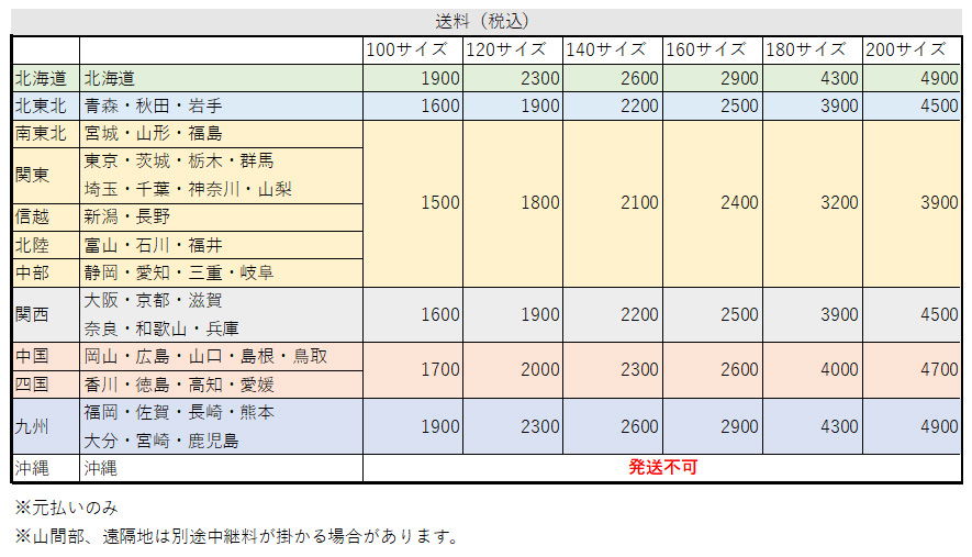 请参考商品网页上的说明,若无说明,一般普通3KG左右的普通件700日元左右,超大件2000日元至1万日元不等。下单前有疑问的请咨询客服。