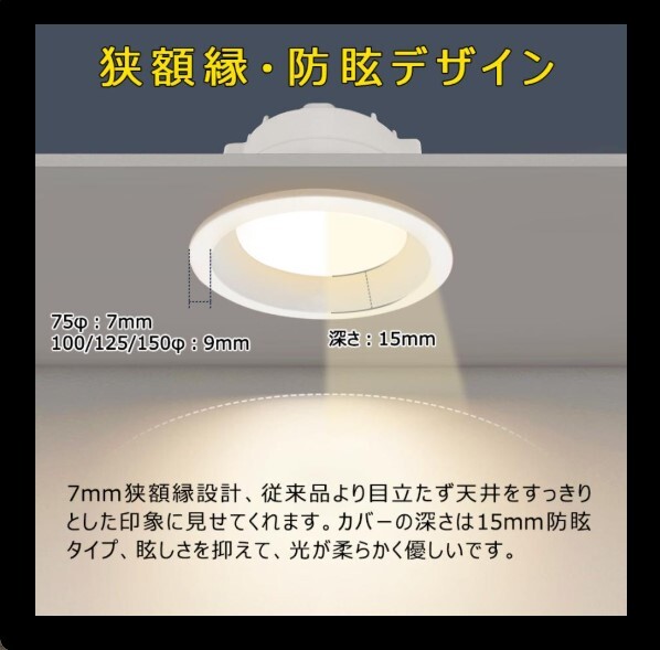 【中古品】LED ダウンライト 150φ 昼光色 埋め込み 一体型 天井照明器具 天井埋込型 拡散光 スポットライト 軽量 薄型 照明 省エネ