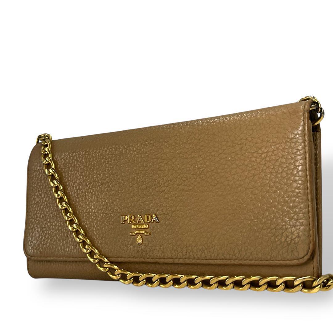 PRADA ゴールドチェーン ゴールド金具 メタルロゴ 金ロゴ ロゴ刻印 ロングウォレット レザー