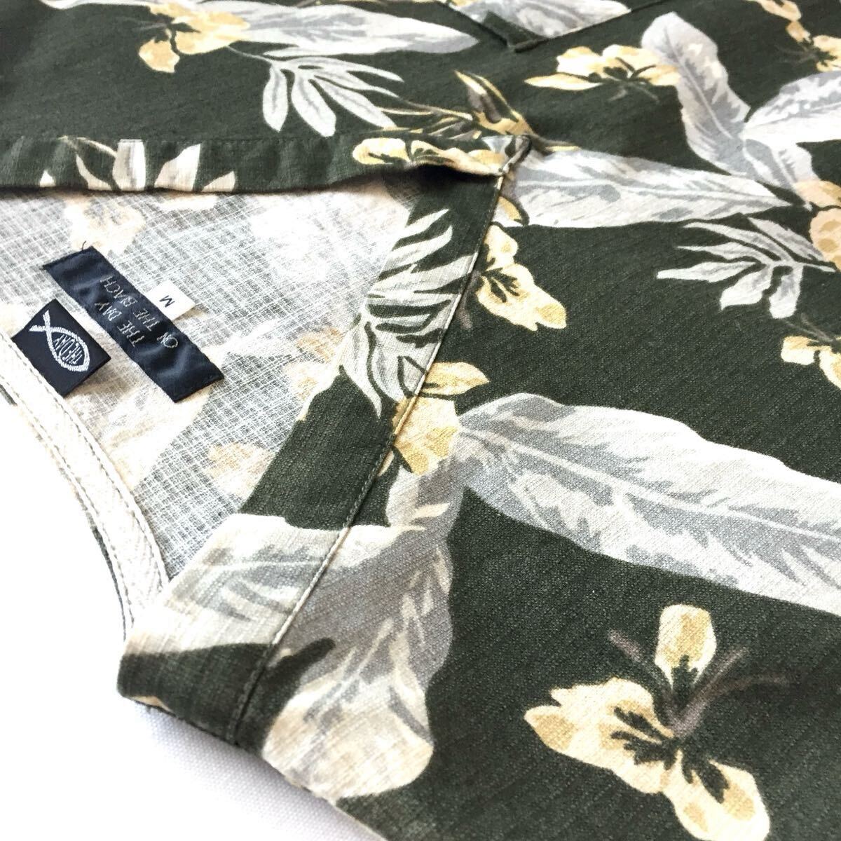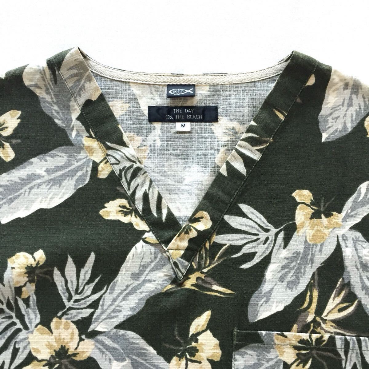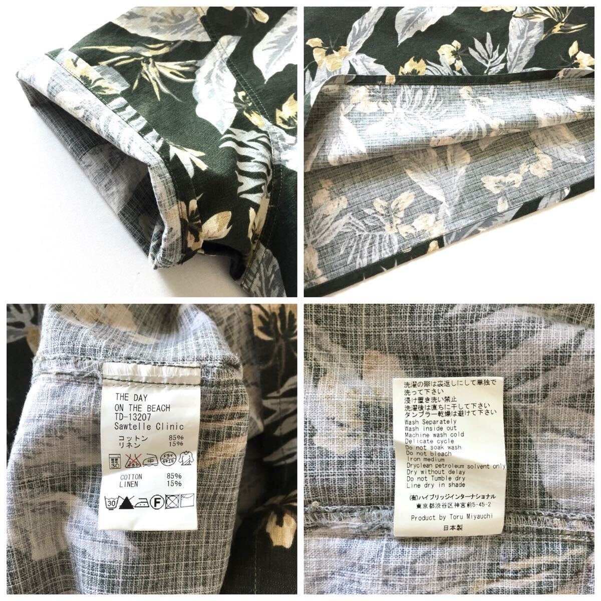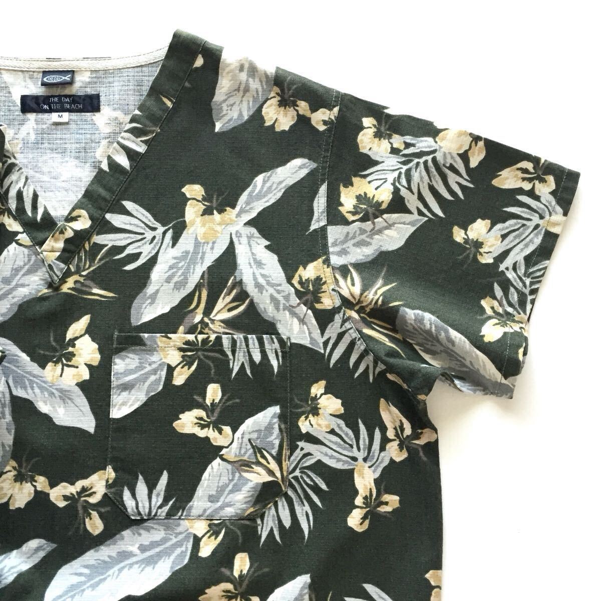 美品 THE DAY ON THE BEACH Aloha shirt ザデイオンザビーチ アロハシャツ Mサイズ ホスピタルシャツ リネン混 半袖 日本製 MADE IN JAPAN