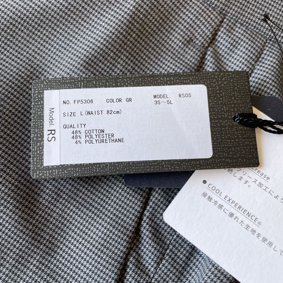 サイズ:L (ウエストヌードサイズ82.0cm)ウエスト仕上がりサイズ85.0cm、ヒップ111.2cm、股上22.5cm、股下92.0cm、ワタリ幅35.3cm、ヒザ幅23.0cm、裾幅18.0cm