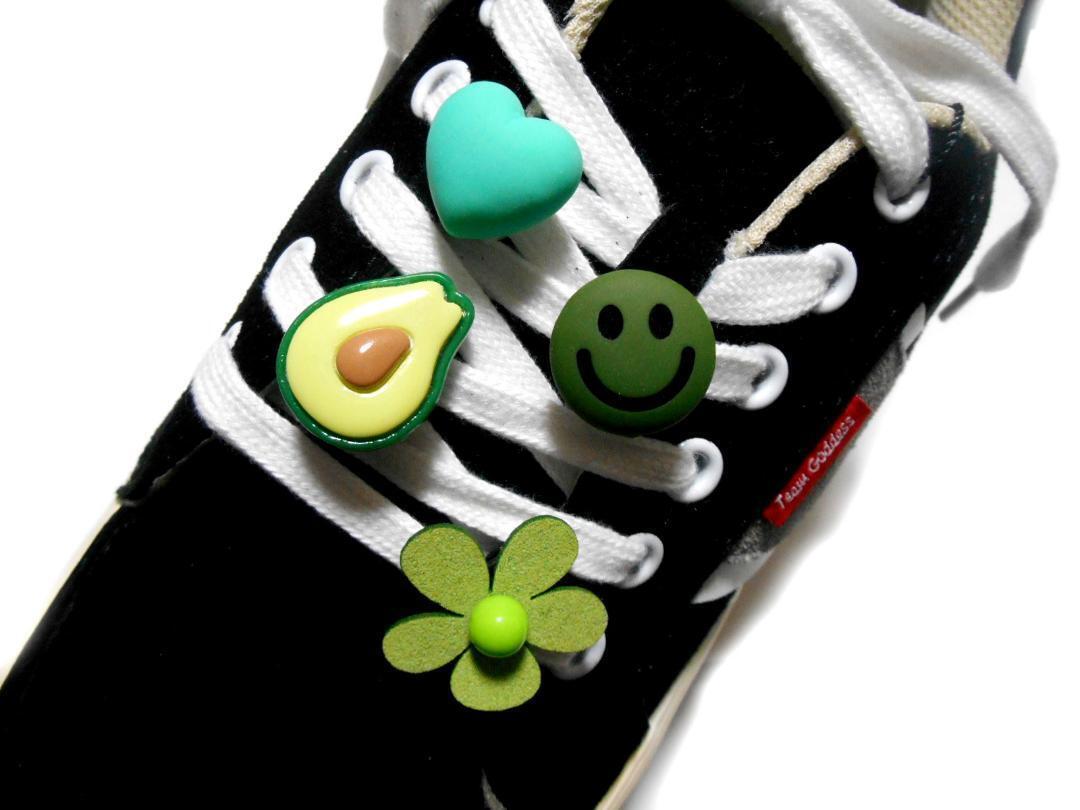 ★ 在庫一掃 ★ サンダルボタン・靴紐チャーム どれでも2000円以上で送料無料 スニーカーをデコレーションできるかわいいシューアクセ。 ベビーシューズにつけたいかわいいセット。 (大人用にも使えます。) ハート約19×20mm バグ約バグ約18×23mm 各1個(アクリル製) ★スニーカーに結んだ状態のまま装着でき繰り返し脱着できます。 *2枚目以降は組み合わせやパーツ形状の参考画像です。 *後ろの取付けパーツの形状は参考画像でご覧下さい。 (取付けパーツの色目は異なるものもございます) |