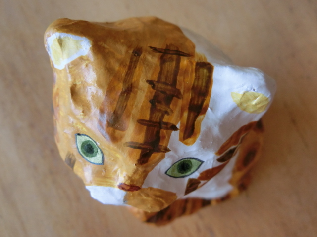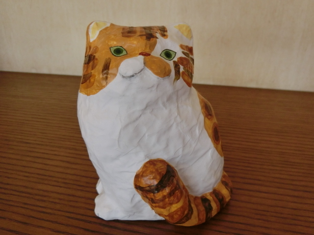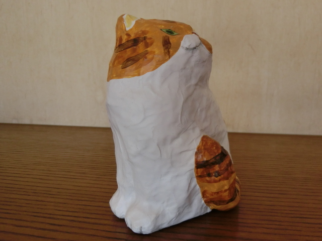 ◆作家物 新品 張り子 猫 キジ白 CAT ねこ papier mache◆