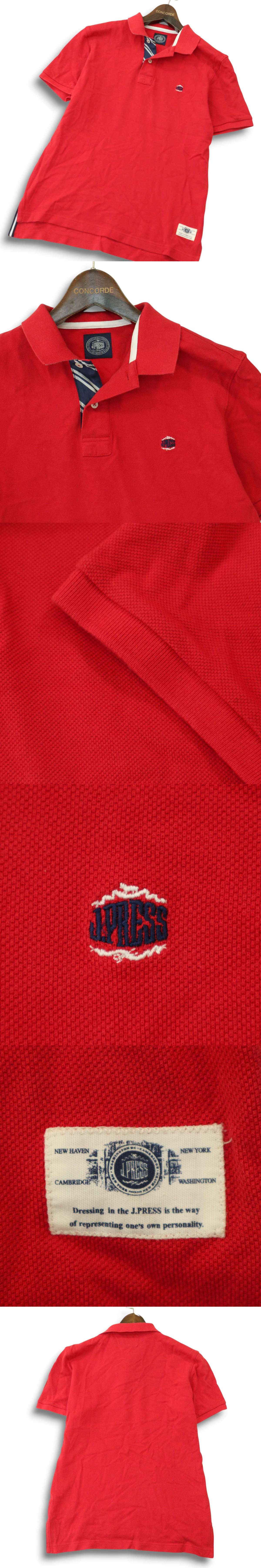 J.PRESS ジェイプレス 春夏 ロゴ刺繍★ ストライプ使い 半袖 ポロシャツ Sz.L メンズ 赤