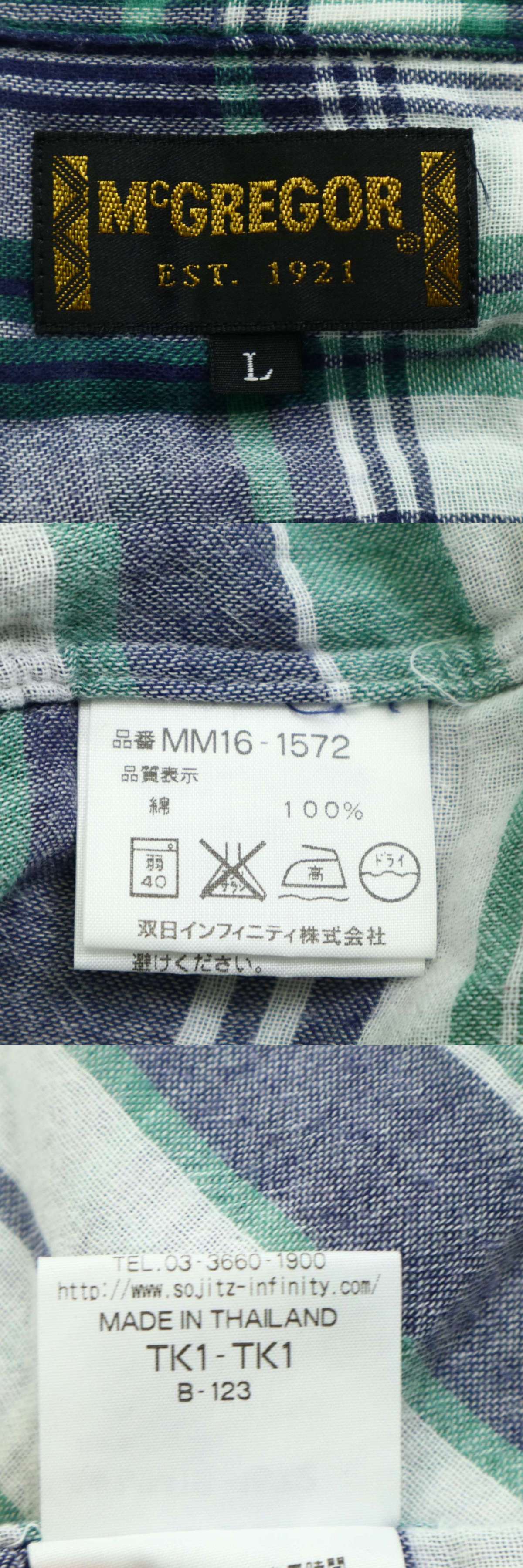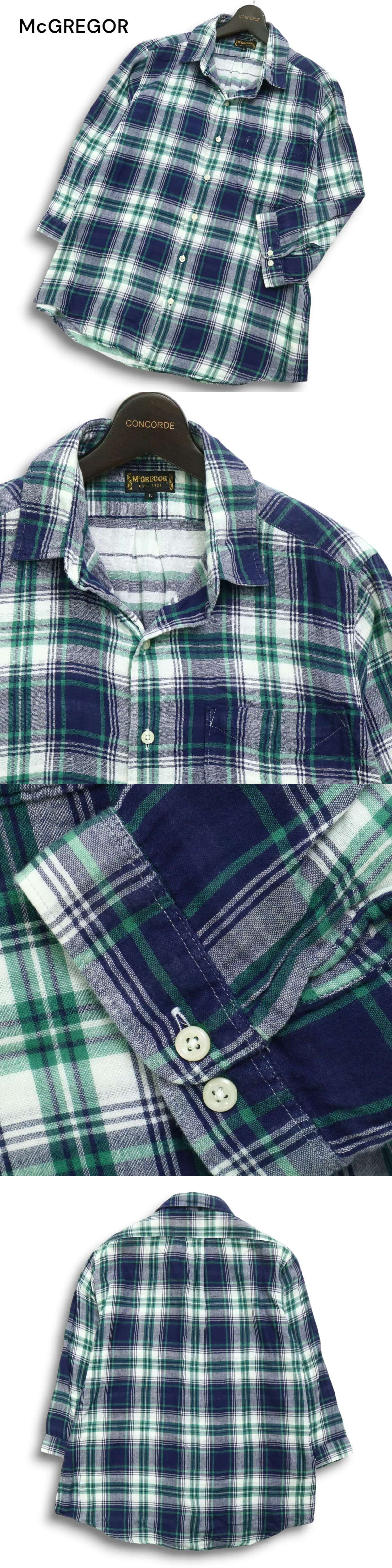 McGREGOR マクレガー 春夏 ダブルガーゼ★ 7分袖 チェック シャツ Sz.L メンズ