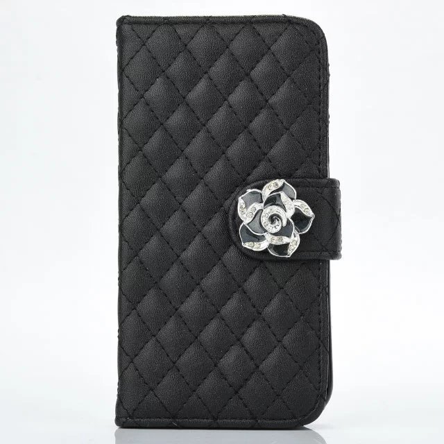 iphone6plus レザーケース アイフォン6sプラス ケース iphone6splus キルティングケース 手帳型 お花 ブラック