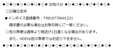 配送方法のご注意 |