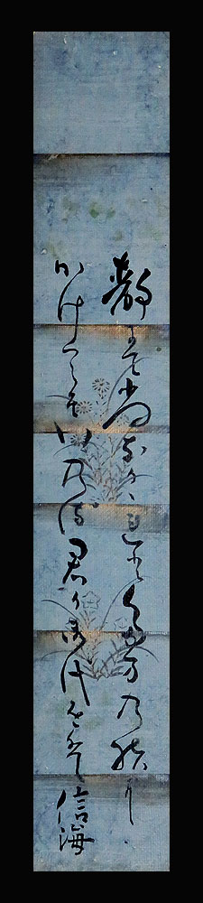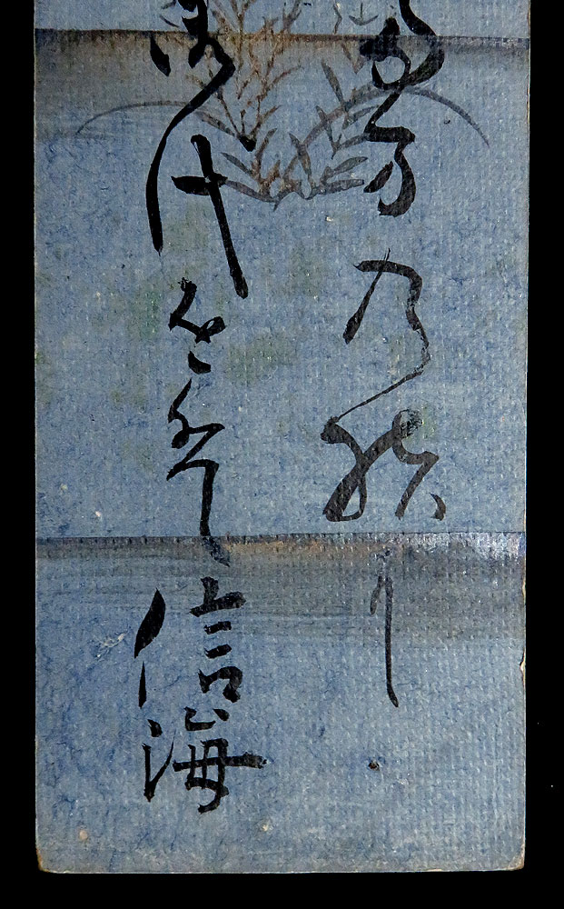 色地銀霞引銀泥下絵紙本肉筆未装短冊1葉 料紙寸法:36.2cm x 6.0cm 商品状態:良好な保存の品です。 信海(しんかい) 勤王僧、京都清水寺住職。忍向の弟。光乗院住職から高野山で修業し、万勝院住職を経て成就院で紫衣を許される。安政大獄に座し、安政6年(1859)寂、39才。 出典:講談社『デジタル版 日本人名大辞典+Plus』 |