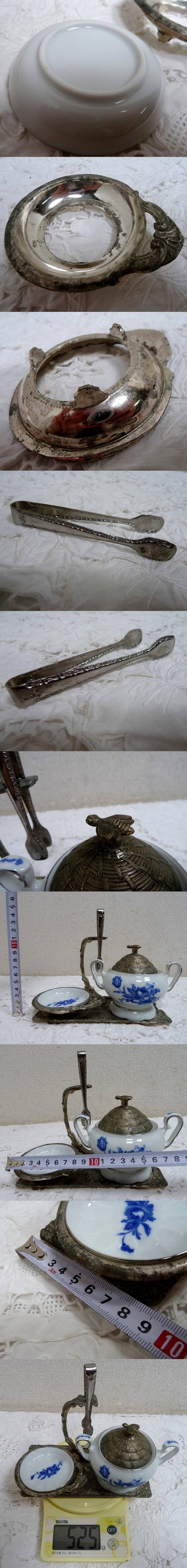(☆BM)【SALE】昭和レトロ ティーセット シュガーポット トレイ トング付き 陶器製 茶器 アフタヌーンティー ヴィンテージ調 アンティーク