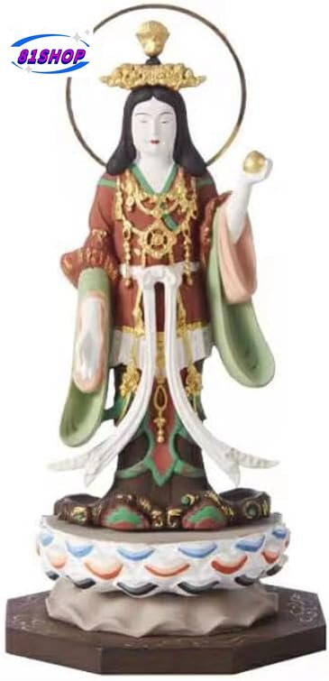 「81SHOP」吉祥天立像木彫りの仏像浄瑠璃寺型 17cm木製:ツゲ 柘植極彩色