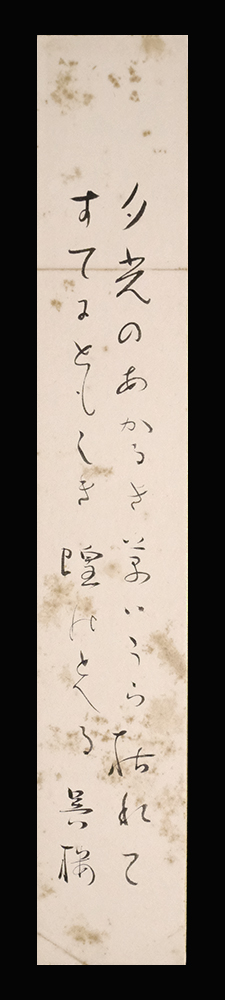 「夕光のあかるき草はうら枯れて すでにともしき蝗のとべる 呉楼」 紙本肉筆未装短冊1葉 作品寸法:36.2cm x 6.0cm 作品状態:実際の品を画像にてお確かめ下さい。 大村呉楼(おおむら-ごろう) 大正・昭和期の歌人 生年明治28(1895)年7月1日 没年昭和43(1968)年8月1日 出生地大阪府池田市 学歴〔年〕関西大学法学部〔大正6年〕卒 経歴毎日新聞大阪本社に勤務するかたわら、大正11年「アララギ」に入会し、中村憲吉、土屋文明に師事する。昭和21年「高槻」を創刊し、27年「関西アララギ」と改題する。歌集に16年刊行の「花薮」などがある。 出典:20世紀日本人名事典 |