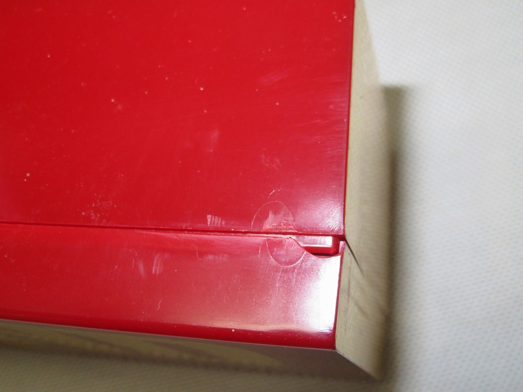 経年保管により持ち手付のタウンケースの角2カ所劣化でカケあり、表側の金色文字に汚れあります。ペンケースは未開封でしたが撮影の為に開封しました。その他製造過程による物や見落とし等ある場合はご了承ください。神経質な方はご遠慮下さい。