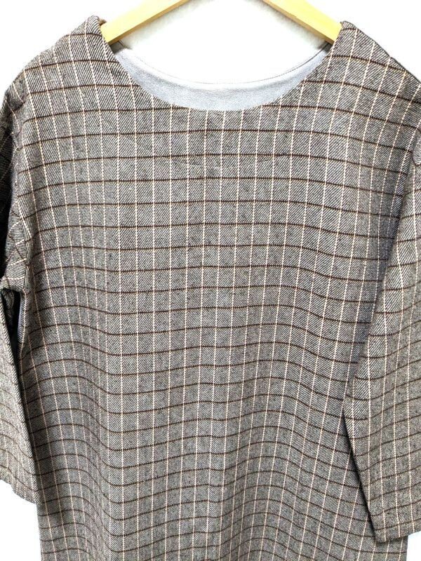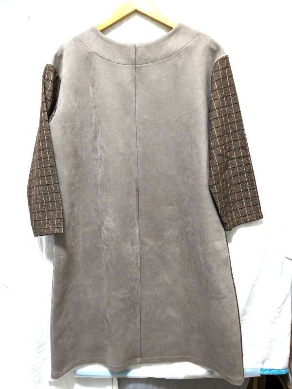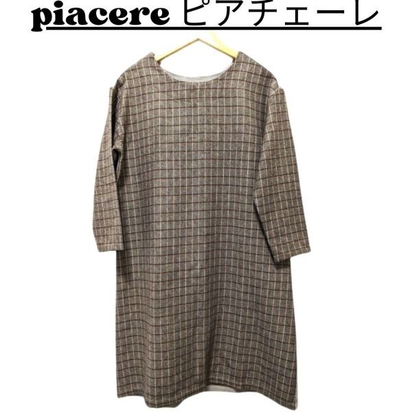 ★美品 piacere ピアチェーレ ワンピース レディース ロング丈 ゆったりサイズ カジュアル ブラウン(チェック柄) フリーサイズ nr3-029