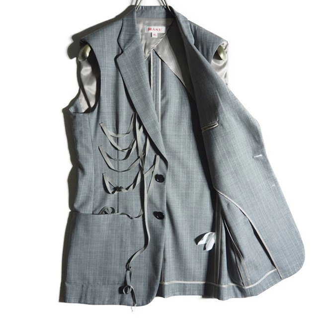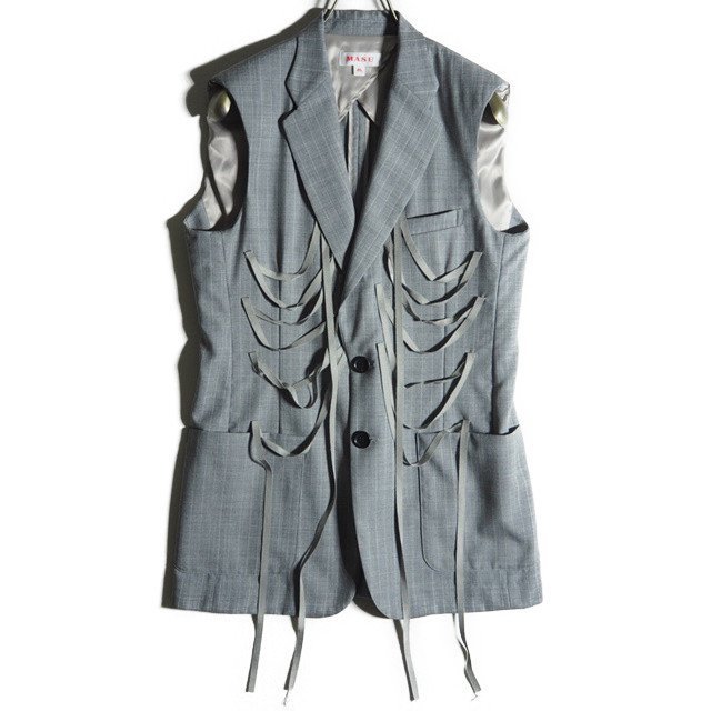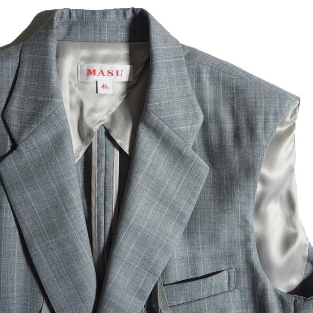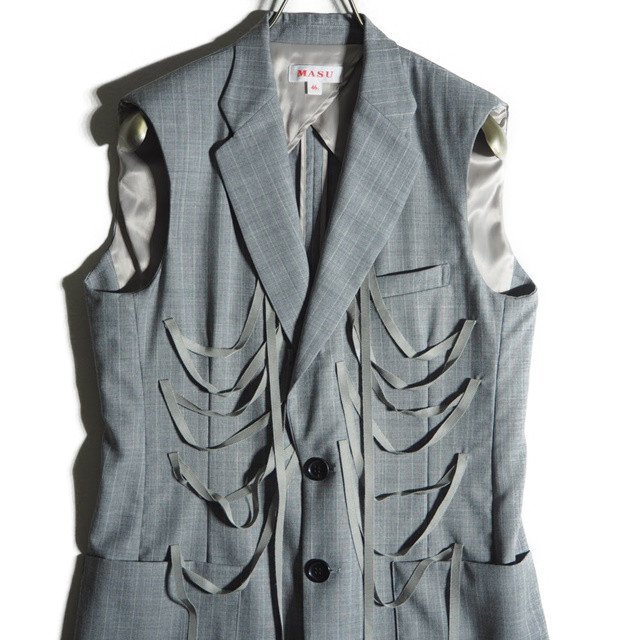 C1288H2 ■MASU エムエーエスユー■ 23SS BONE TAILORED VEST ウールベスト グレーストライプ 46 / ジレ ロングベスト 春夏