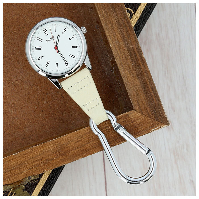 | 商品説明 | ・男女兼用で使えるスタンダードなデザインが魅力!カジュアルなカラビナウォッチが登場。 ・大きめの白色の文字盤に、すっきりとした字体の数字を放射状に並べたシンプルでお洒落なクロック・フェイス。 ・5分単位・5秒単位にも小さく数字が刻まれているので、より細かく時間が把握できる! ・アクセサリー感覚でベルトループやバッグの金具に片手で装着できる、レバー式のカラビナ付き。 ・カラビナで時計を逆さまにぶら下げて使用するのがポイント!バッグやベルトに取り付けたまま、外さずにそのまま時間が確認できて便利! ・落ち着いたカラーのフェイクレザーベルト仕様だから、ビジネススタイルからプライベートまでシーンを選ばずに使いやすい!腕時計をつけられないお仕事の方にもオススメ。 |