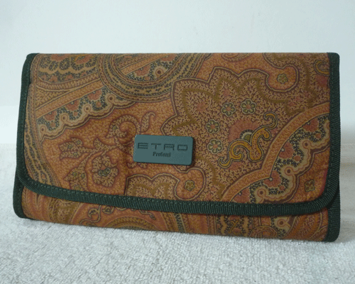 | 良品 ETRO エトロ ナイロン ペイズリー柄 ブラウン系 グリーン マルチケース 小物入れ ポーチ | ||