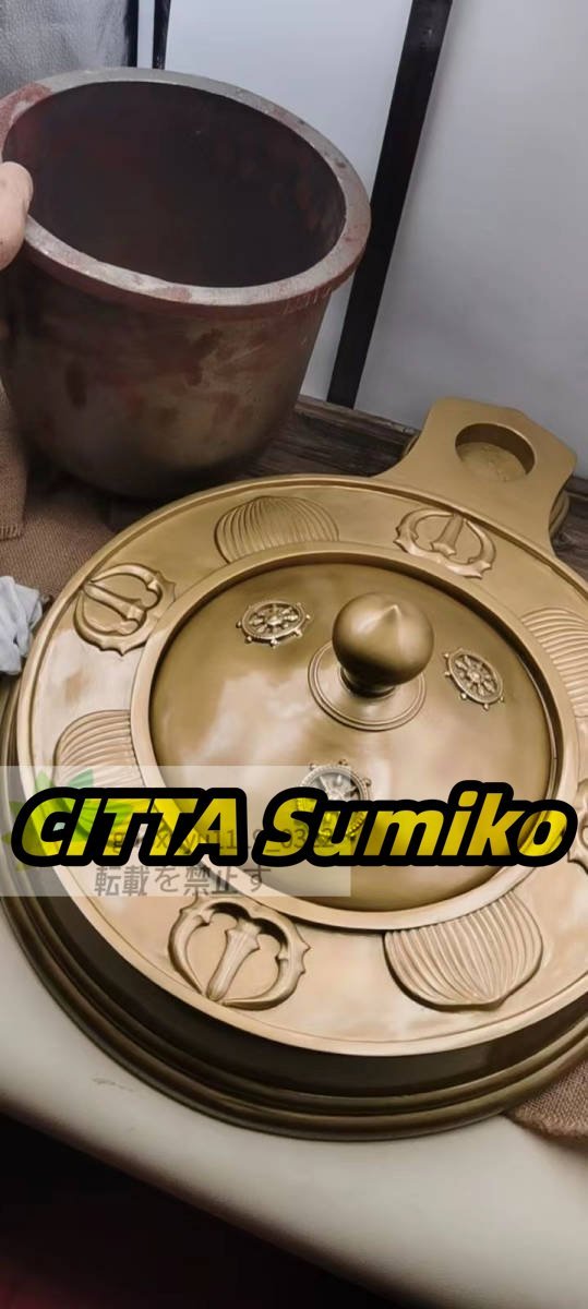 護摩釜 真鍮製 蓋付 炉 直径約41cm 密教法具 寺院用仏具