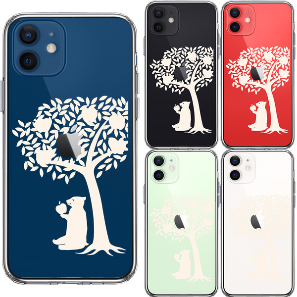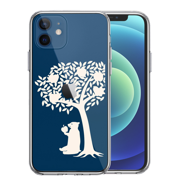 iPhone12mini ケース クリア リンゴ食べるクマ ホワイト スマホケース 側面ソフト 背面ハード ハイブリッド