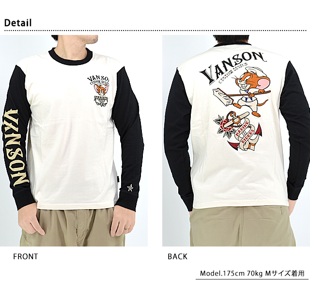 | vanson×TOM&JERRYコラボ ベア天竺ロングTシャツ◆vanson VSN-M01812 | |||||||||||||||||||||||||