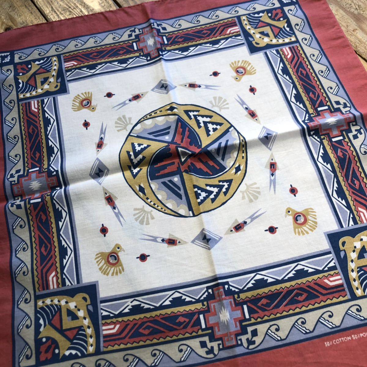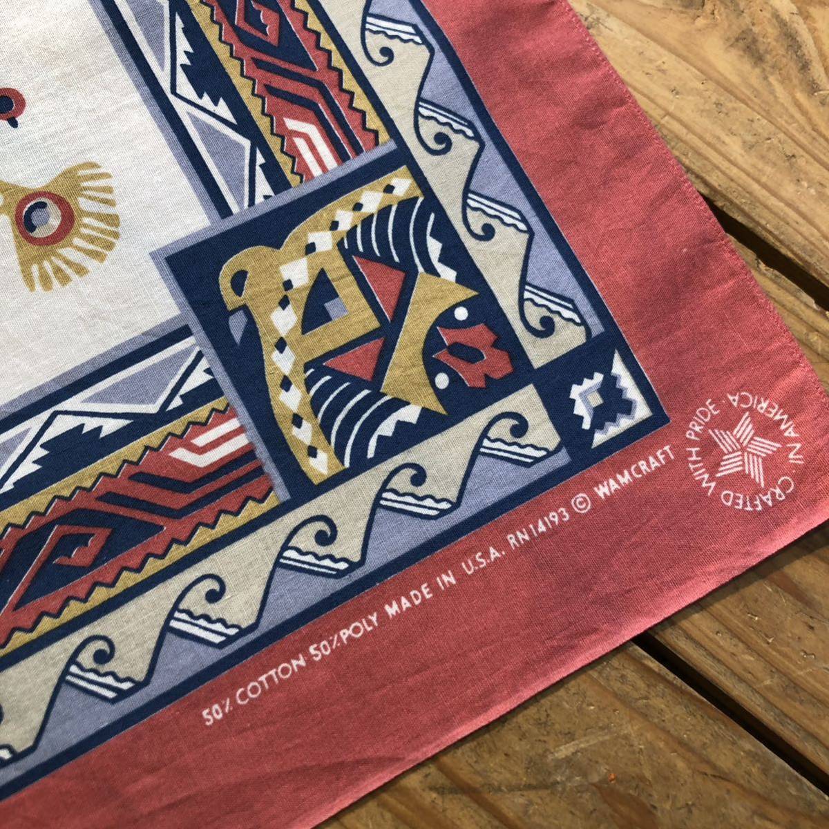 アメリカで購入したセカンドハンド(古着)の、WAMCRAFT ネイティブ柄 バンダナです。