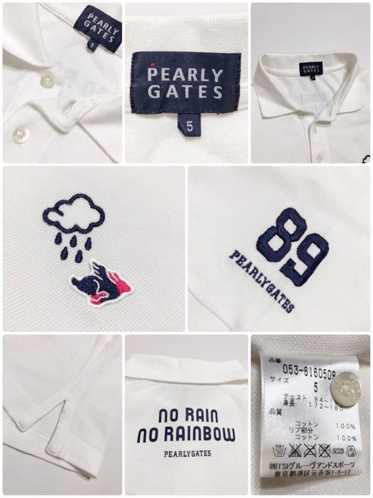 PEARLY GATES GOLF パーリーゲイツ ゴルフ ウェア 鹿の子 ポロシャツ トップス コットン サイズ5 半袖 白 053-6160509