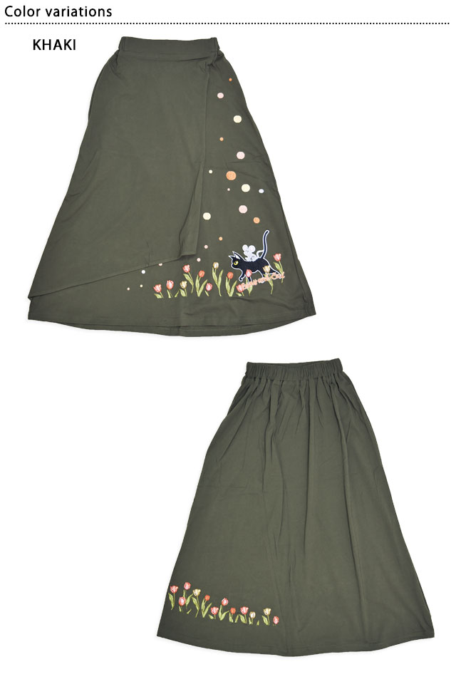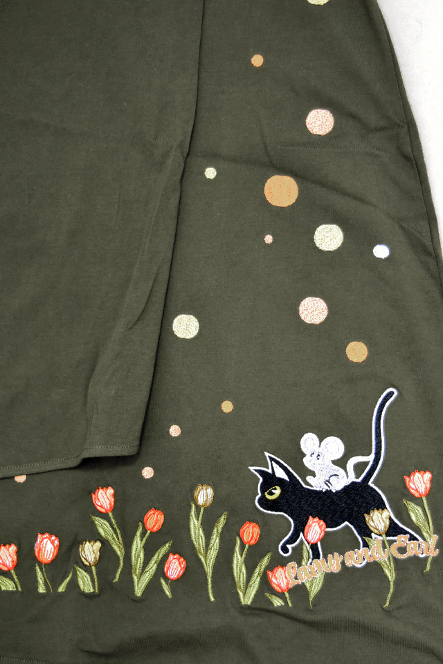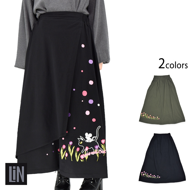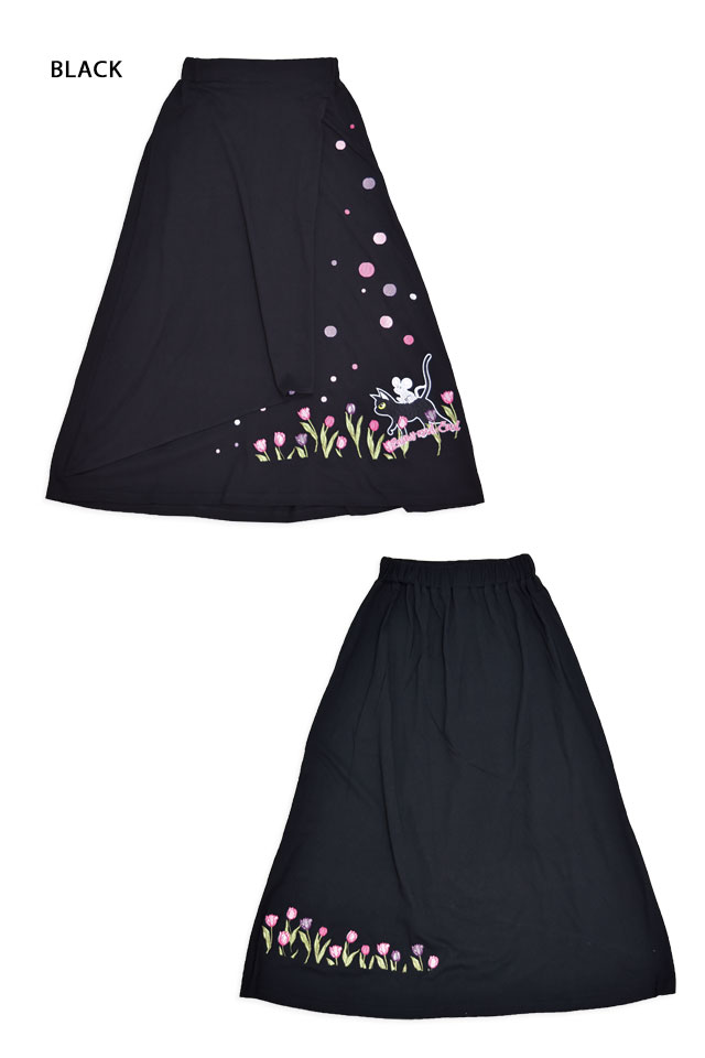 何でもあり、何でもやる新ブランド「LIN」から、ラミ&アール「チューリップレースカート」(AL-75750)のご紹介です。 黒猫のLamy(ラミ)とネズミのEarl(アール)。 ラミ&アールからチューリップをモチーフにしたスカートが登場しました。 裾にはラミとアール、色とりどりのチューリップを刺繍。 さらにスカートのフロント部分は、チューリップの花びらをイメージしたラップスカートになっています。 ボディーには柔らかな生地を採用。 | ||||||||||||