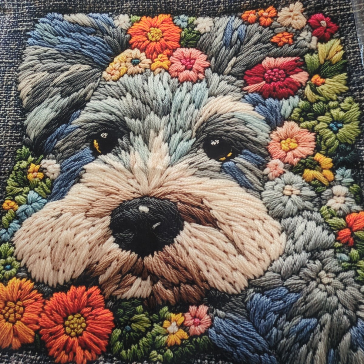 こちらは、 新品未使用 シュナウザー お花 刺繍風 ポリエステル クッションカバー インテリア になります♪