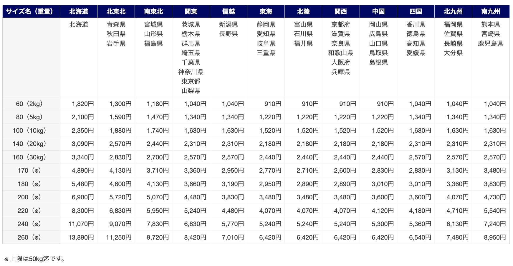 送料表