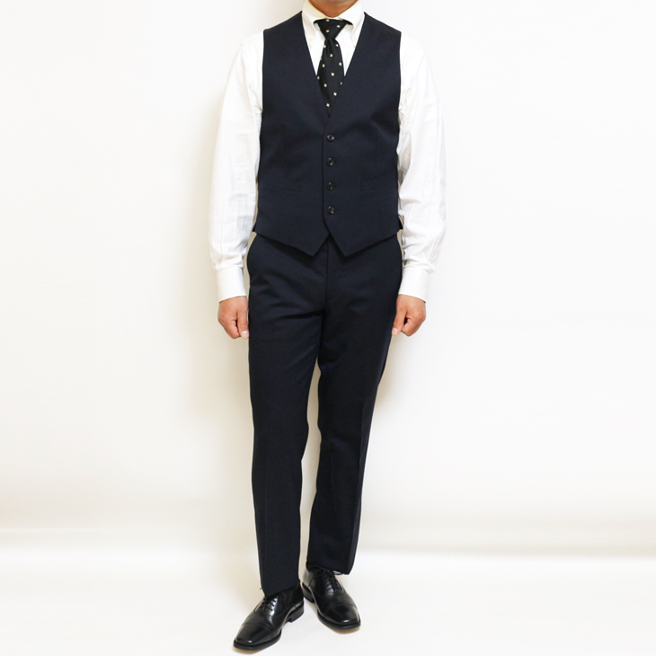 | デザイン | 2つボタン・センターベント・4つボタンベスト・ノータックローライズパンツ | |||||||||||