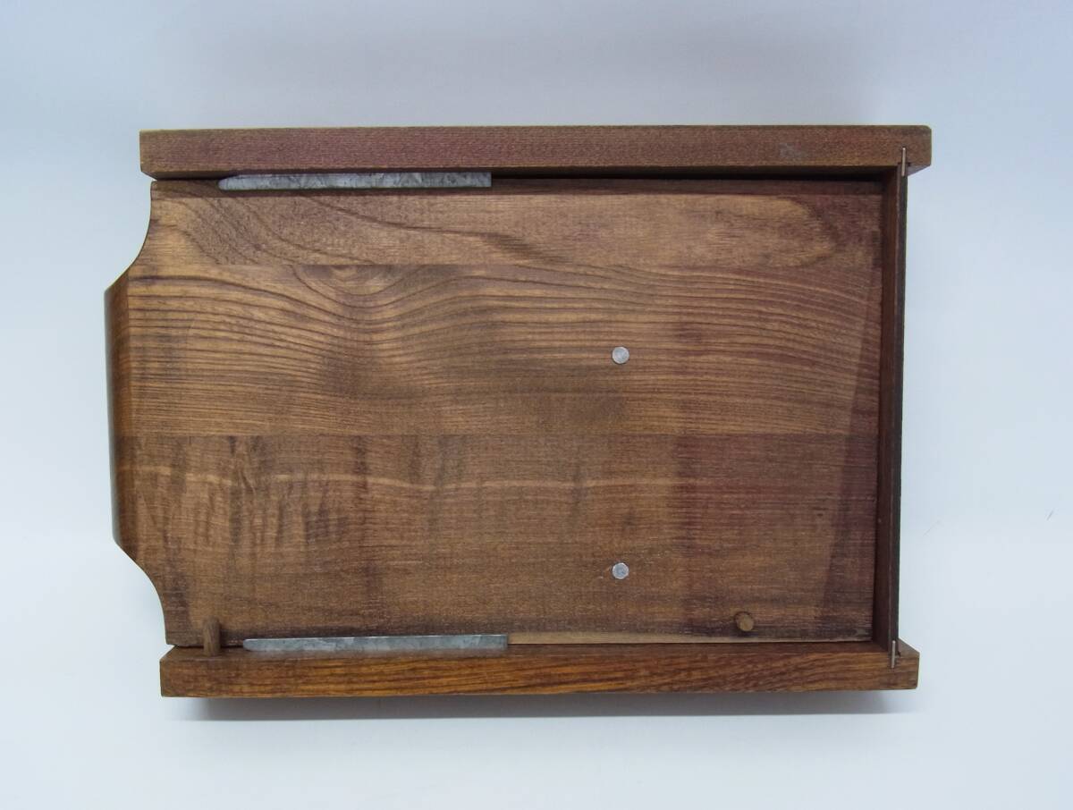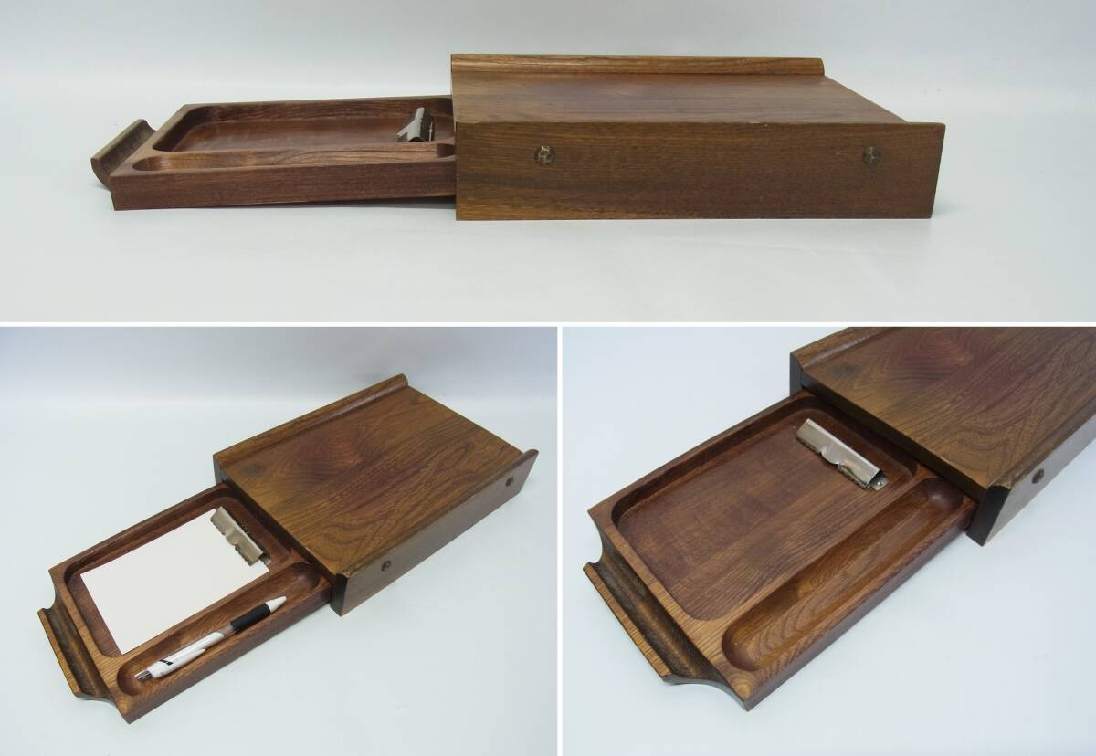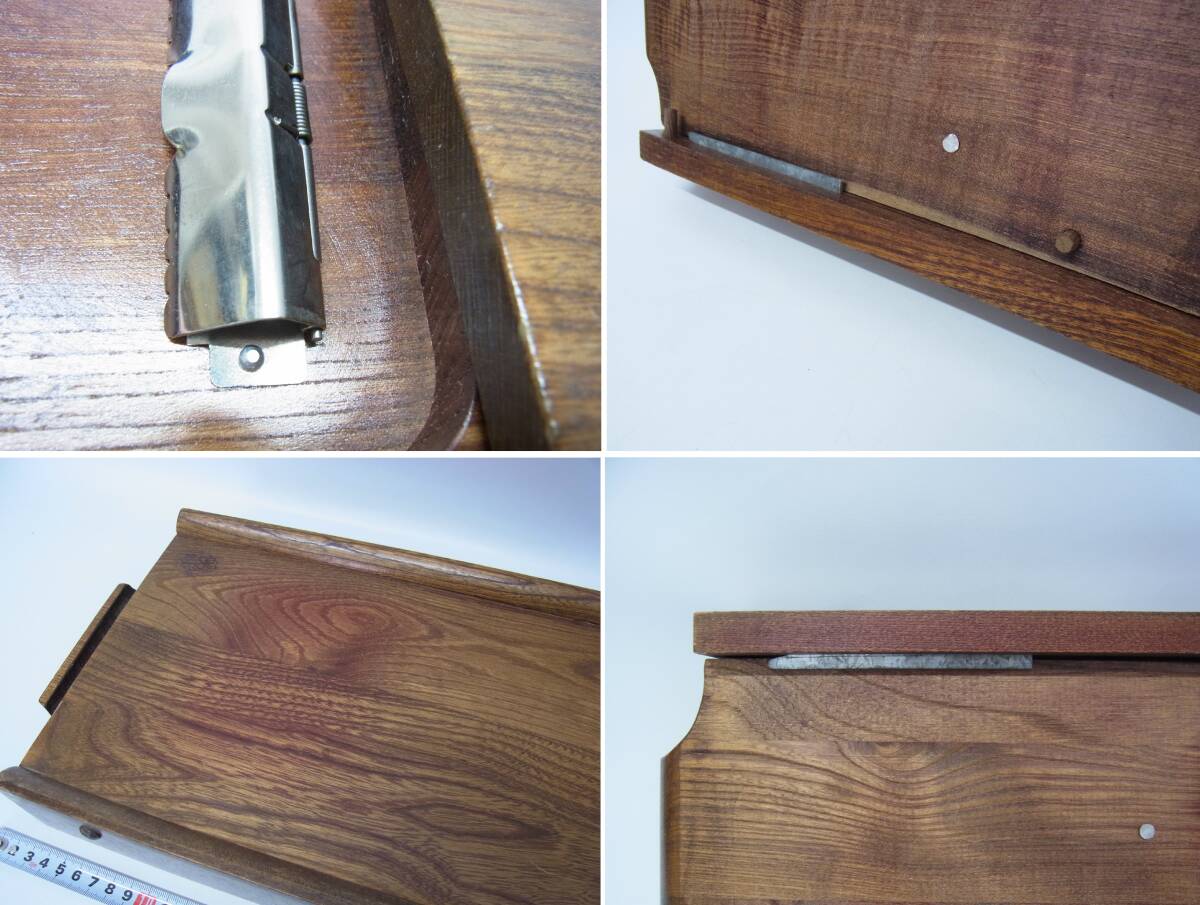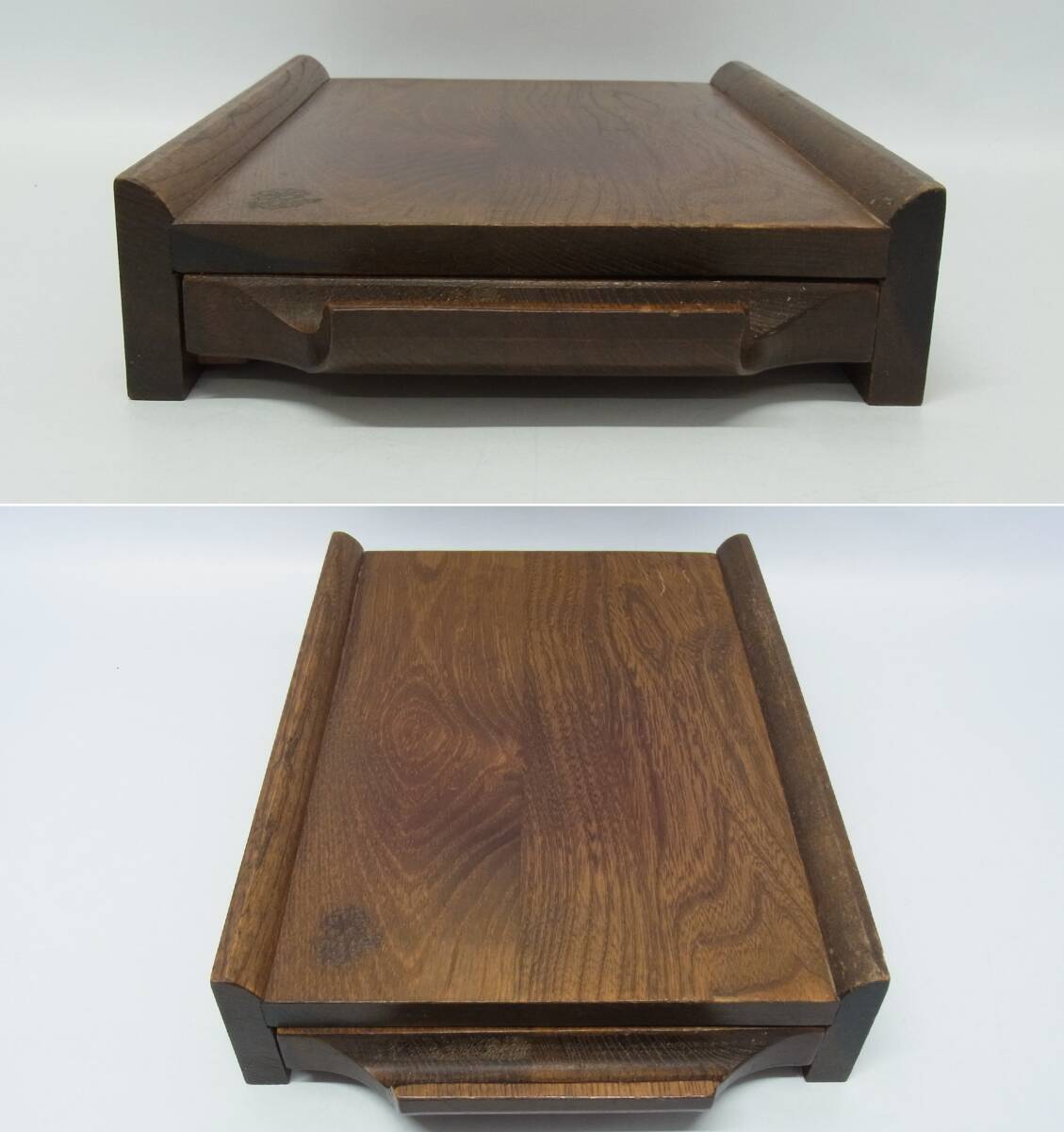 | 譲り受けた物で、本来の状態含め詳細は不明です。 画像にてお詳しい方、お分かりになる方のご判断でお願い致します。 ※画像にあるメモ紙(ハガキサイズ)とボールペンは付属しません。 スレキズやくすみ、ヤケ・色あせや汚れなどビンテージ感ございます。 使用に問題があるようなひどいガタツキなどのダメージはありません。 現状でのお渡しとなりますので、お手入れなど前提のうえ、 十分なご検討をお願い致します。 状態に関しましては画像でご確認いただき、ご判断をお願い致します。 気になる点はご入札前にご質問ください。 ※専門的な知識がありませんので、ご質問内容によっては お答え出来ない場合があるかもしれません。予めご了承ください。 木製品の中古、現状でのお渡し、経年保管品になりますので、 ご理解いただける方のご入札いただけましたら幸いです。 撮影した照明により、色合いが多少違って見えるかもしれませんが、ご了承ください。 【サイズ】 約30.8×約21×高さ約5.7センチ ※素人採寸です。多少の誤差はご了承くださいませ。 ※画像でもご確認ください。 ※画像では約22×11cmのティッシュ箱と比較もしております。 【発送方法】 ・ゆうパック/80サイズ ---------------------------------------------------------------------- ※ゆうパックの送料はお届け地域によって送料が異なりますので、 気にされる方は必ずご入札前に「質問欄」よりお問い合わせください。 | ||