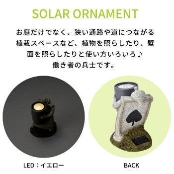 | お庭だけでなく、狭い通路や道につながる植栽スペースなど、植物を照らしたり、壁面を照らしたりと使い方いろいろ♪働き者の兵士です。 |