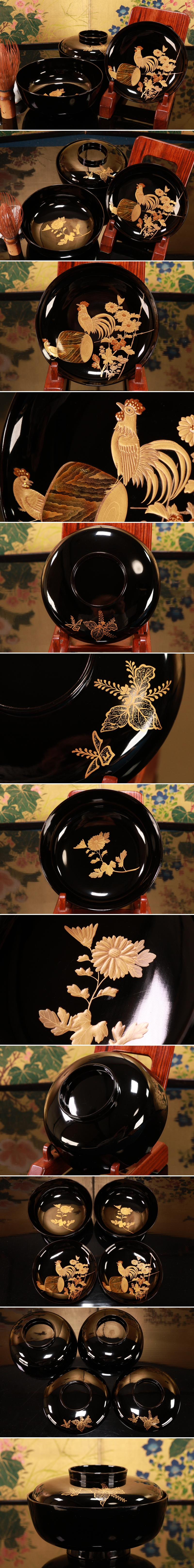 輪島塗 加賀蒔絵 花鳥図金蒔絵 菓子椀 二客 木製 茶道具 懐石 会席 BJ132