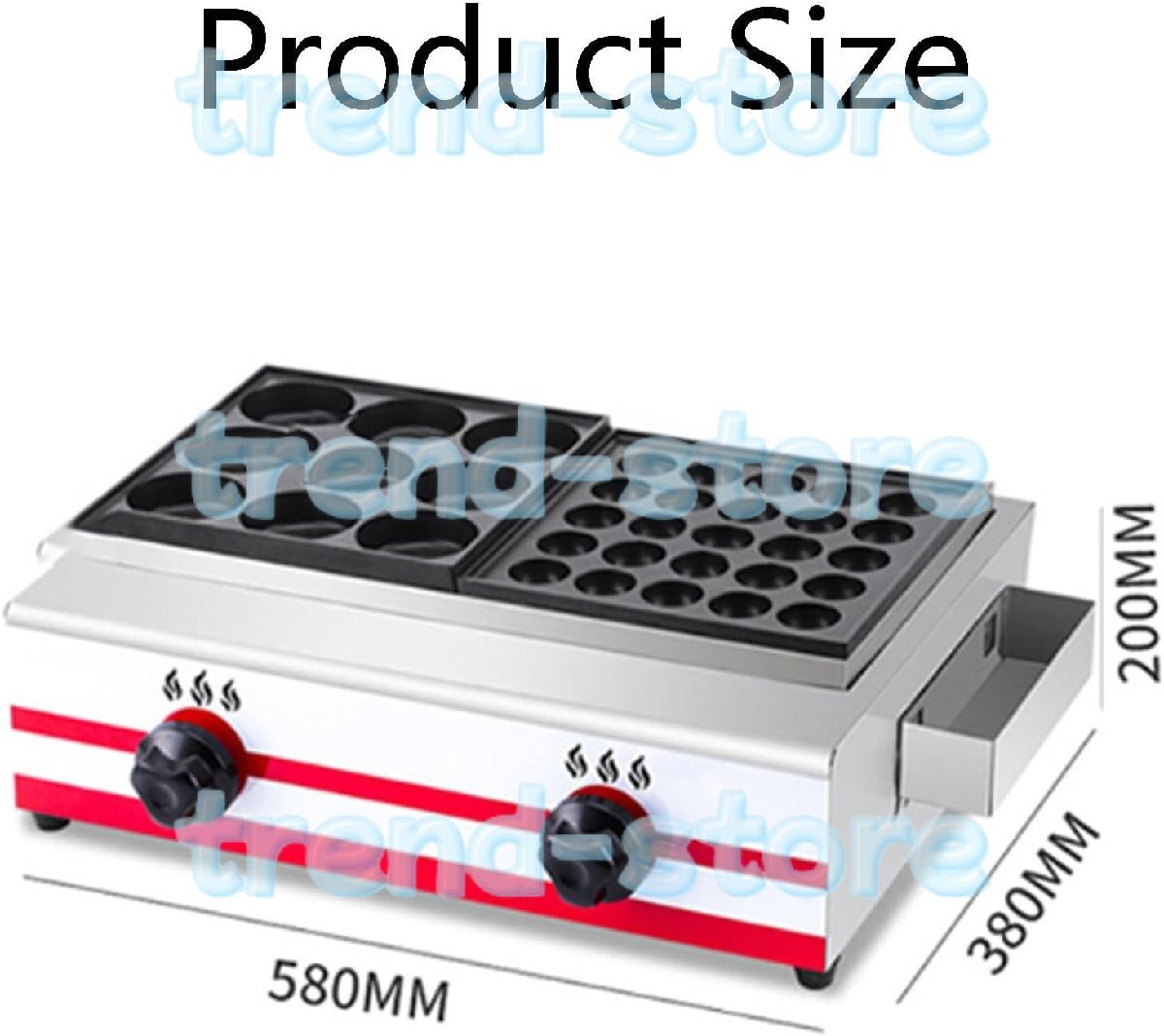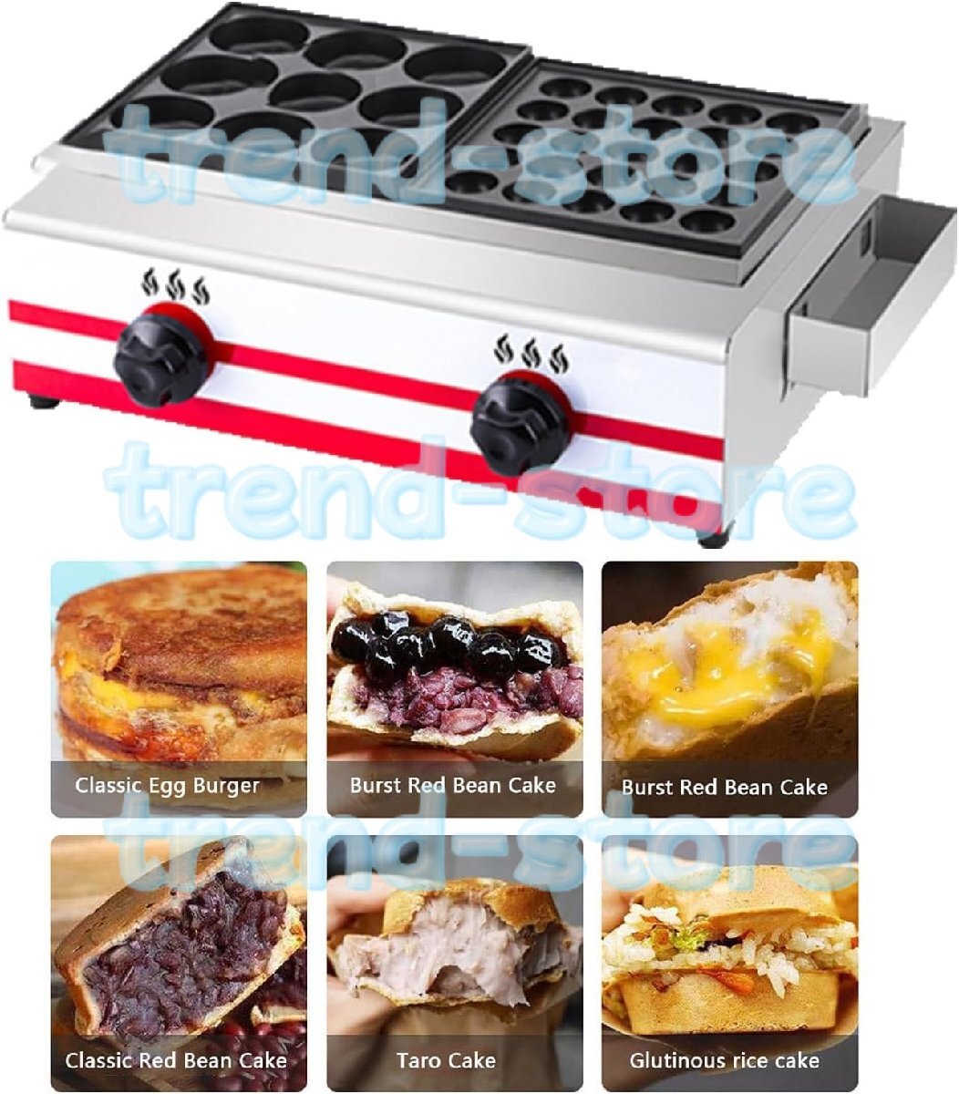 業務用ガス加熱バーガーマシン、業務用ガスエッグバーガーマシン、個別ノブコントロール、9/18/34穴、34卵またはフィッシュボールを同時に揚げることができます(34)