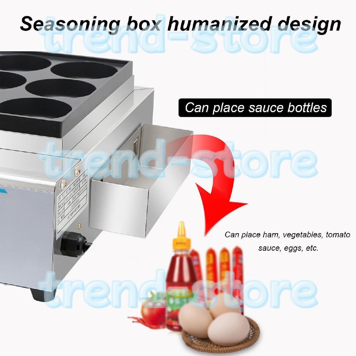 特徴: 1.ステンレス製。型はアルミ板で作られており、3層のノンスティックコーティングが施されているため、プレートにくっつかず、使用後のお手入れも簡単です。 2.温度ノブは個別に制御され、食品に適した温度を選択できます。 3.テフロンノンスティックコーティングで作られており、均一に加熱され、熱伝導性が高く、すぐに加熱されます。 4.9/18/34穴設計を採用し、サイド収納ラックはさまざまな調味料ボトルを収納できます。 仕様:製品名:業務用ガスエッグバーガーマシン本体材質:ステンレススチール型材質:アルミ板加熱方法:ガスエッグキャッスル直径:8cmフィッシュボール直径:4cm 9穴:梱包重量:5kg製品サイズ: 31*37*20cm 梱包サイズ:48*45*28.8 Cm 18穴: 梱包重量:8.5kg 製品サイズ:58*37*20cm 梱包サイズ:72*48*28.8cm 34穴:(エッグバーガー+フィッシュボール) 梱包重量:8.5kg 製品サイズ:58*38*20cm 梱包サイズ:72*48*28.8cm 梱包リスト: 1*業務用ガスエッグバーガーマシン 親切なヒント: 1.手動測定による1?2cmの差が生じる場合があります。 2.光やディスプレイなどの要因により、実際にお届けする商品と写真が異なる場合がございます。実際の商品を参考にしてください。